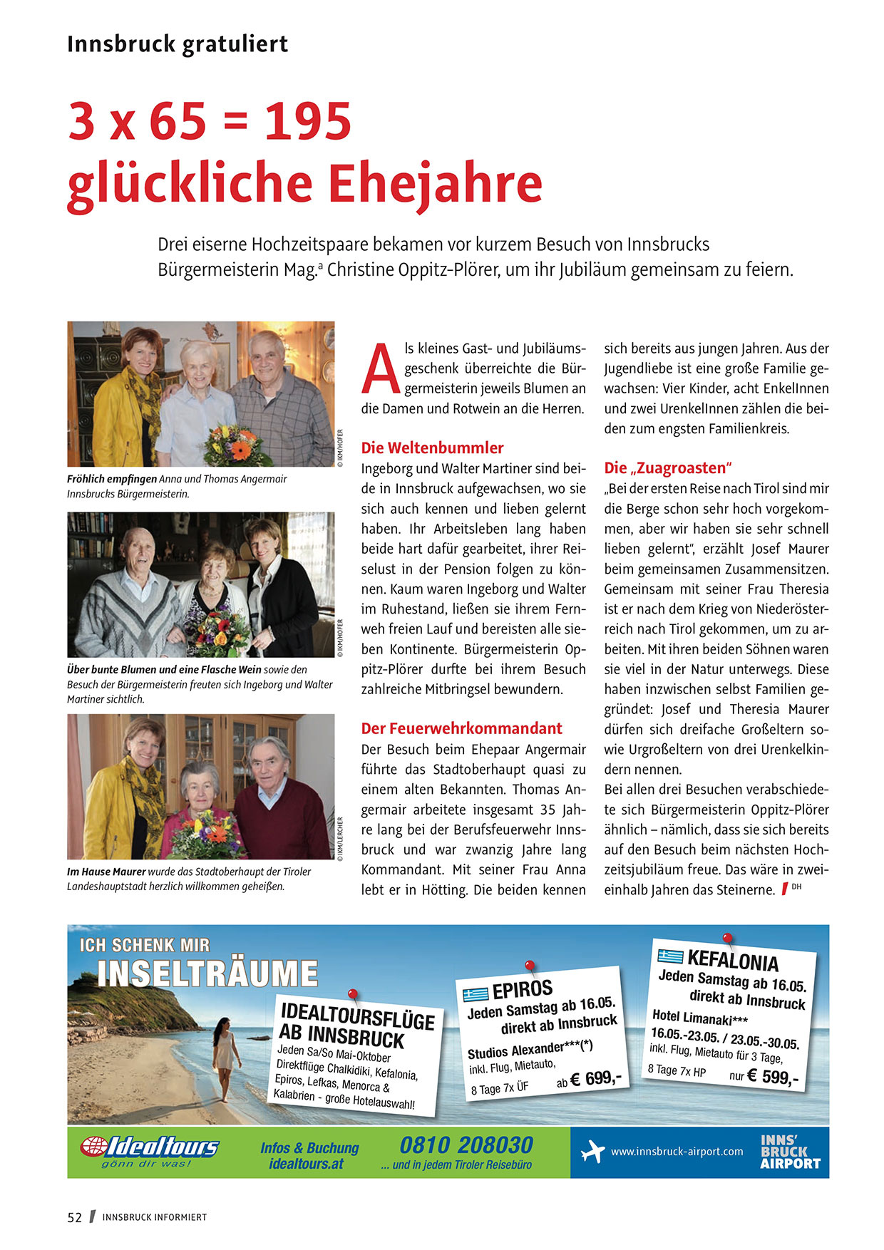 Drei eiserne Hochzeitspaare bekamen vor kurzem Besuch von Innsbrucks