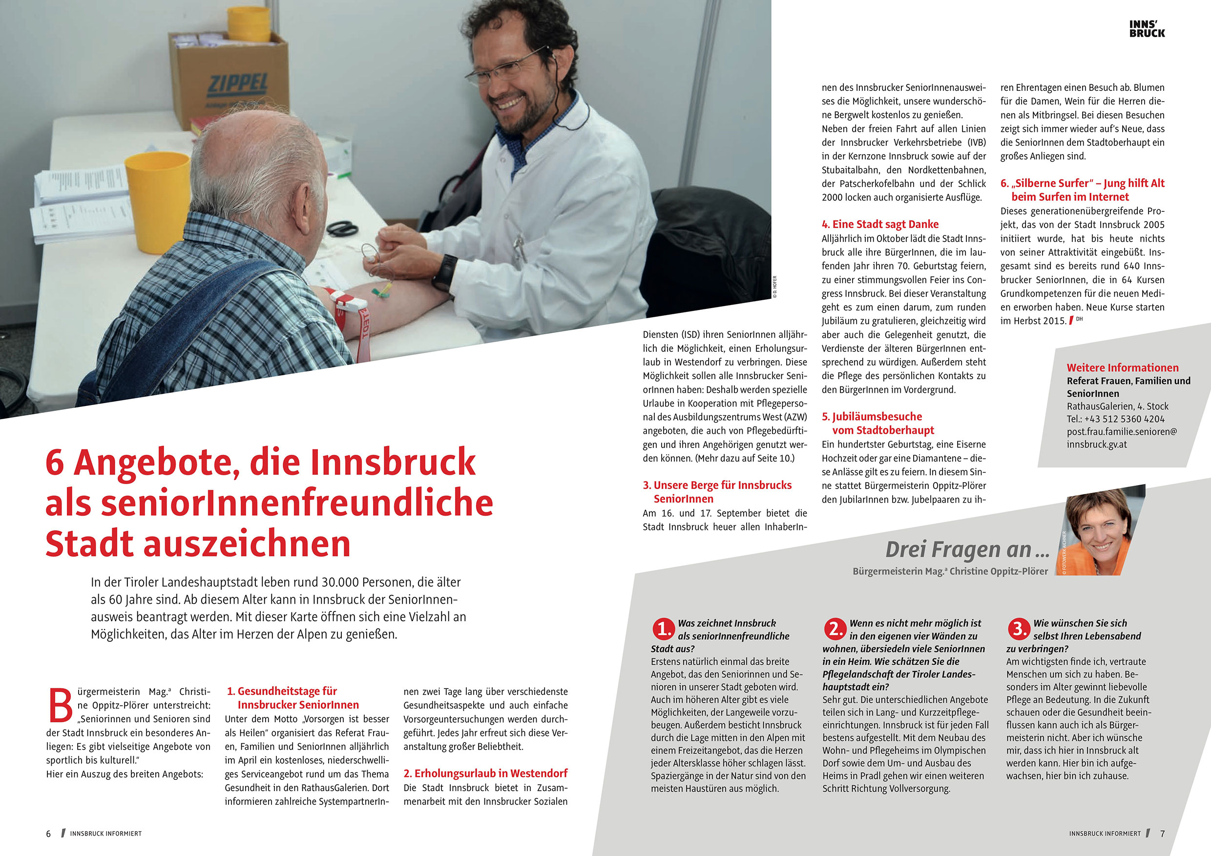 als 60 Jahre sind. Ab diesem Alter kann in Innsbruck der SeniorInnenausweis beantragt werden. Mit dieser Karte öffnen sich eine Vielzahl an