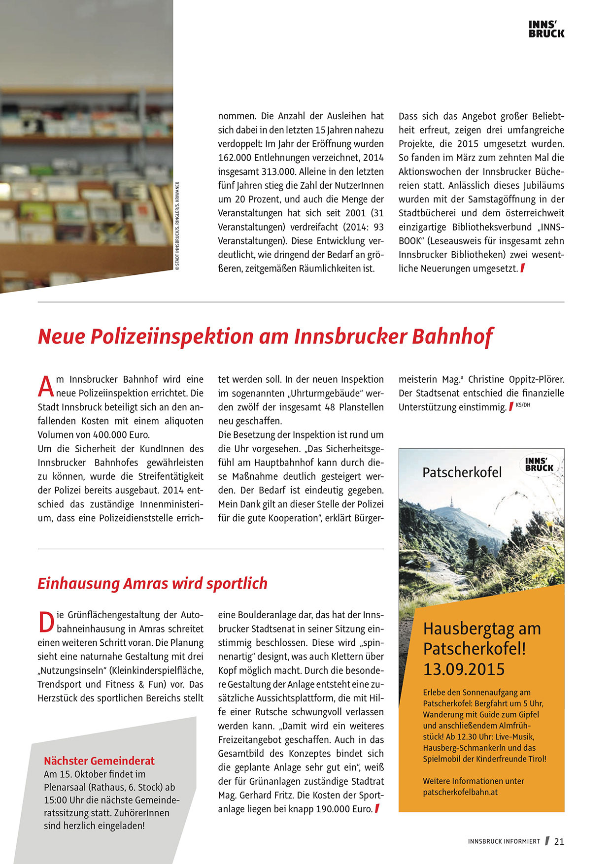 Aktionswochen der Innsbrucker Büchereien statt. Anlässlich dieses Jubiläums