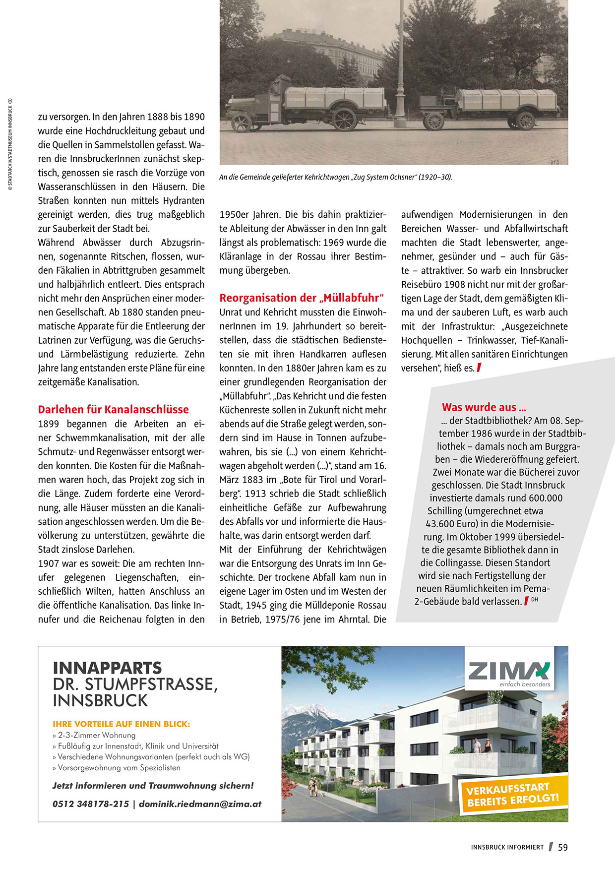 die Quellen in Sammelstollen gefasst. Waren die InnsbruckerInnen zunächst skeptisch, genossen sie rasch die Vorzüge von