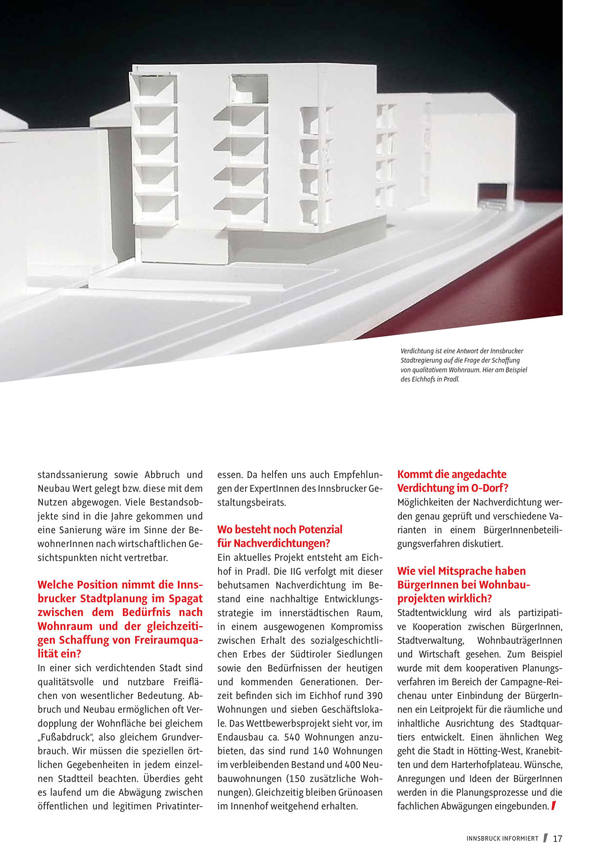 Ein aktuelles Projekt entsteht am Eichhof in Pradl. Die IIG verfolgt mit dieser
