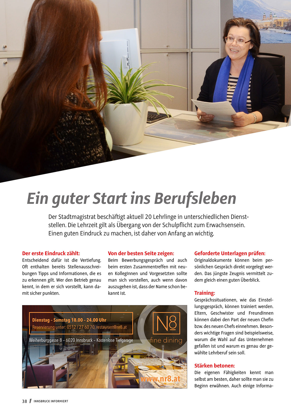 Reservierung unter: 0512 / 27 60 70, restaurant@nr8.at