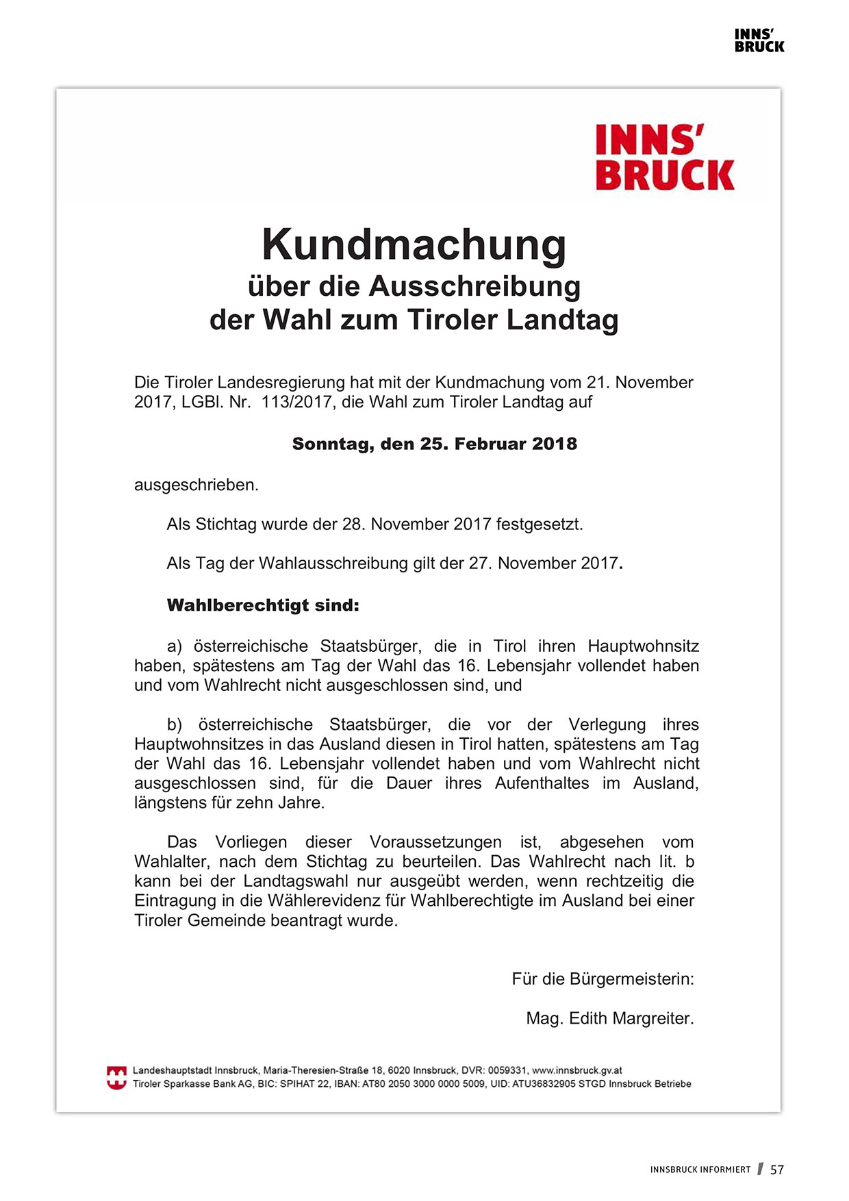 2017, LGBl. Nr. 113/2017, die Wahl zum Tiroler Landtag auf