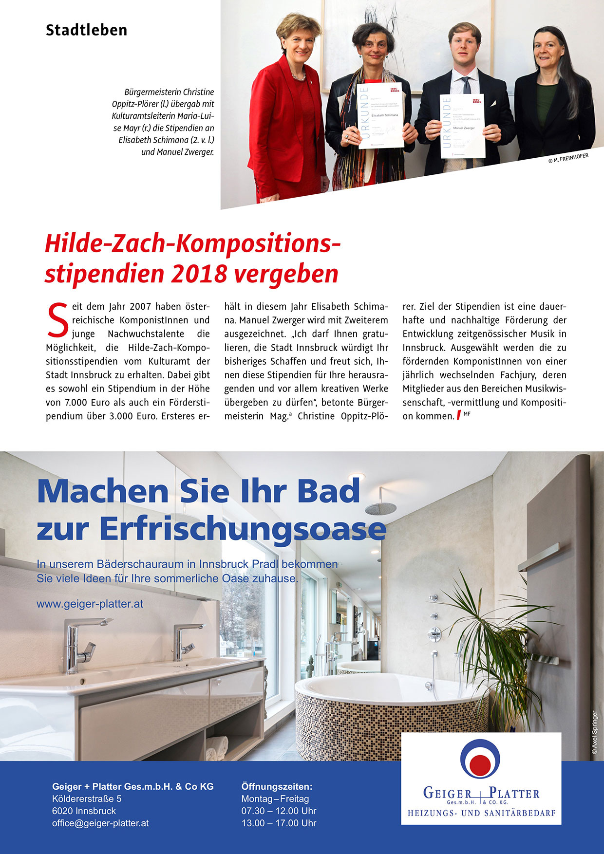 ausgezeichnet. „Ich darf Ihnen gratulieren, die Stadt Innsbruck würdigt Ihr