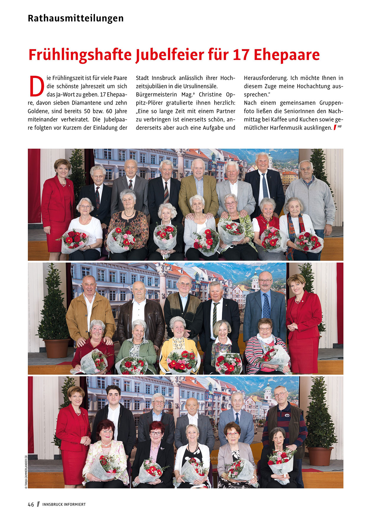Stadt Innsbruck anlässlich ihrer Hochzeitsjubiläen in die Ursulinensäle.