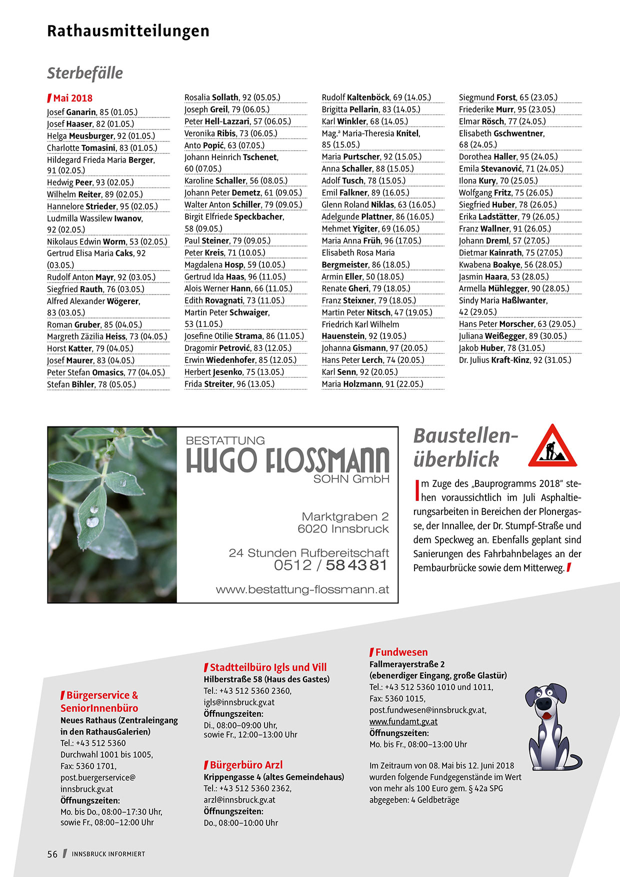 m Zuge des „Bauprogramms 2018“ stehen voraussichtlich im Juli Asphaltierungsarbeiten in Bereichen der Plonergasse, der Innallee, der Dr. Stumpf-Straße und