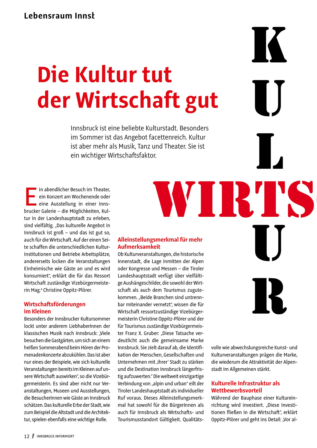 auch für die Wirtschaft. Auf der einen Seite schaffen die unterschiedlichen KulturInstitutionen und Betriebe Arbeitsplätze,