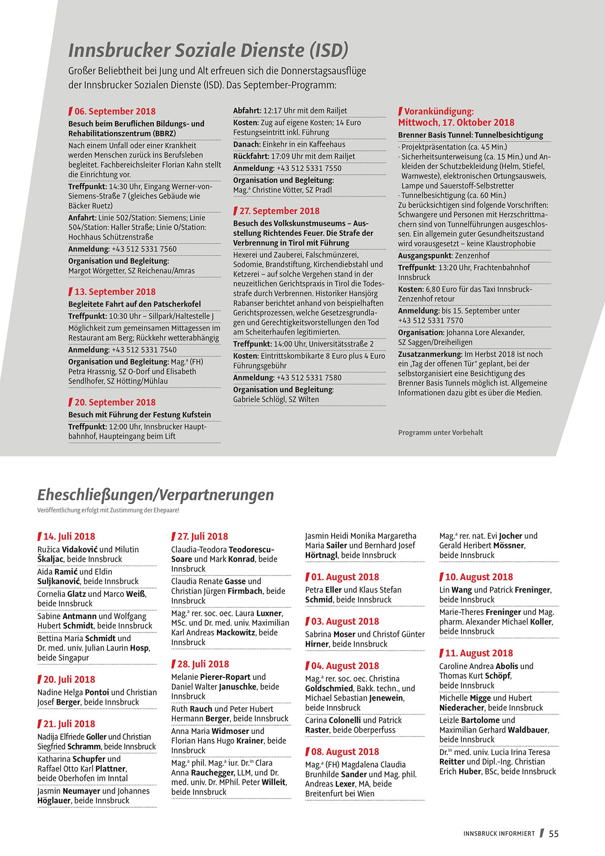der Innsbrucker Sozialen Dienste (ISD). Das September-Programm: