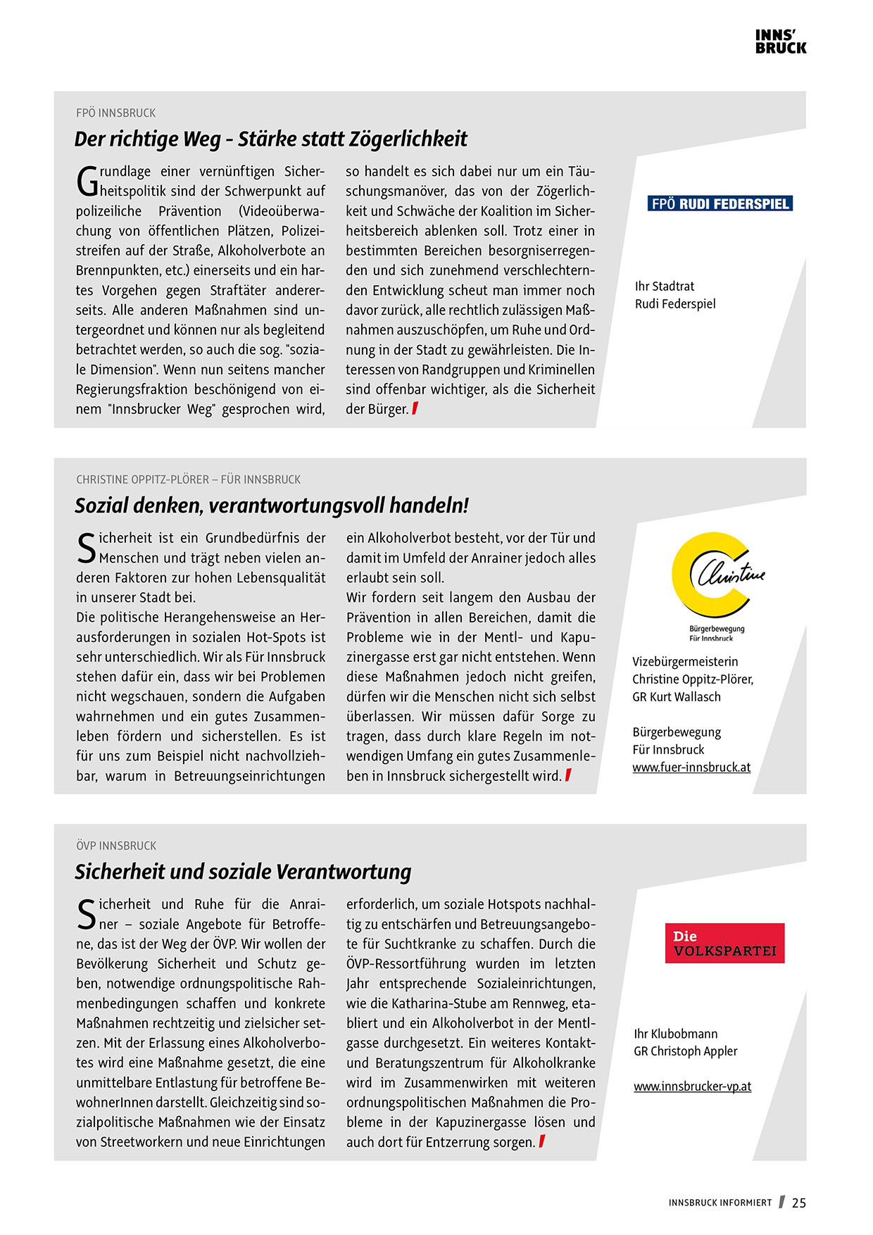 tragen, dass durch klare Regeln im notwendigen Umfang ein gutes Zusammenleben in Innsbruck sichergestellt wird.