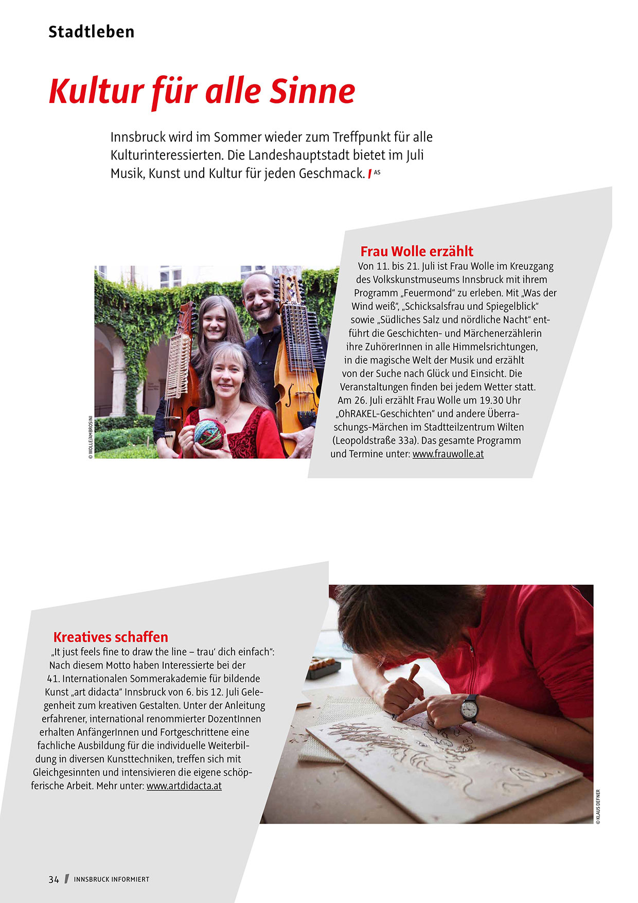 Kunst „art didacta“ Innsbruck von 6. bis 12. Juli Gelegenheit zum kreativen Gestalten. Unter der Anleitung