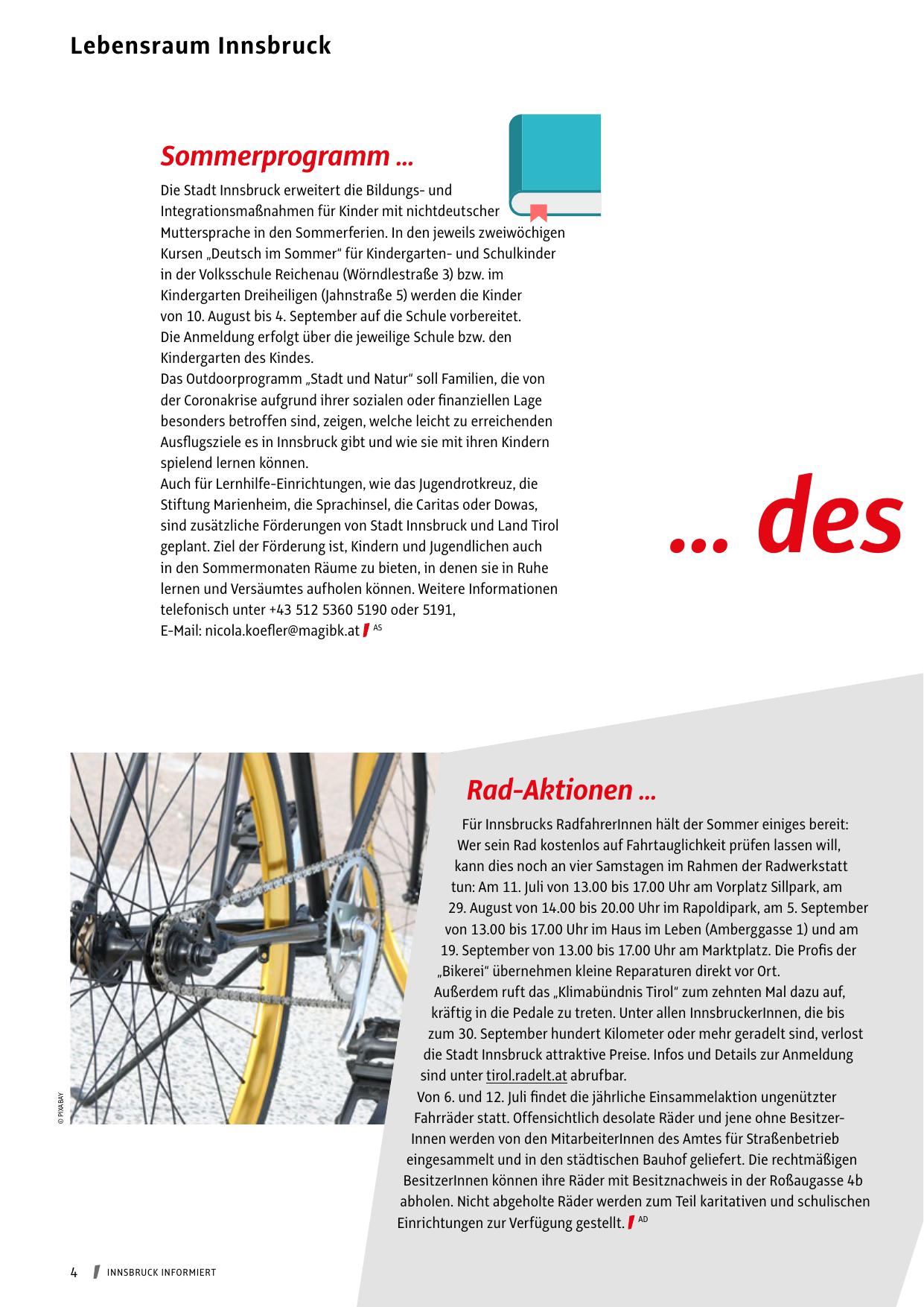 Für Innsbrucks RadfahrerInnen hält der Sommer einiges bereit: