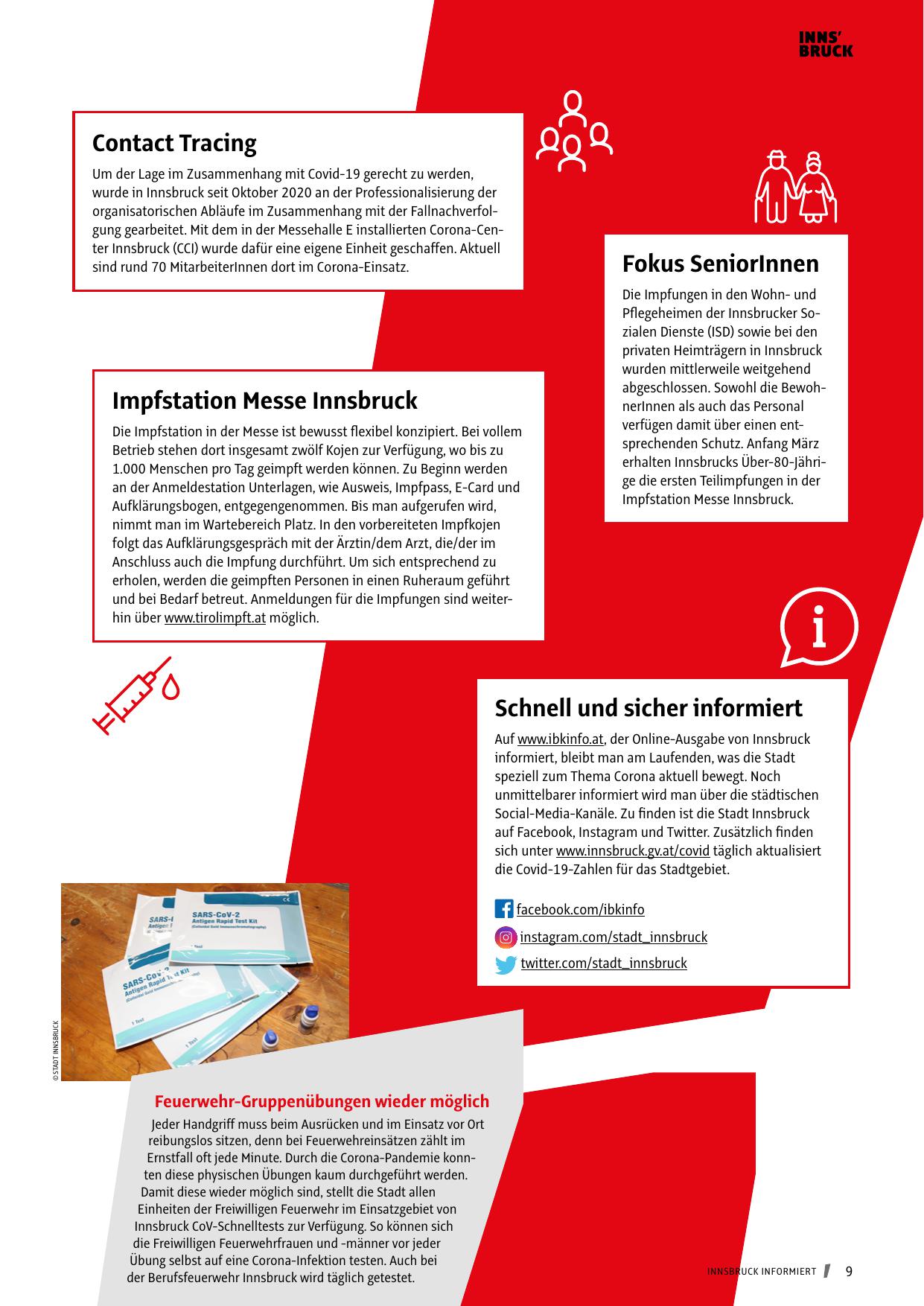 organisatorischen Abläufe im Zusammenhang mit der Fallnachverfolgung gearbeitet. Mit dem in der Messehalle E installierten Corona-Center Innsbruck (CCI) wurde dafür eine eigene Einheit geschaffen. Aktuell