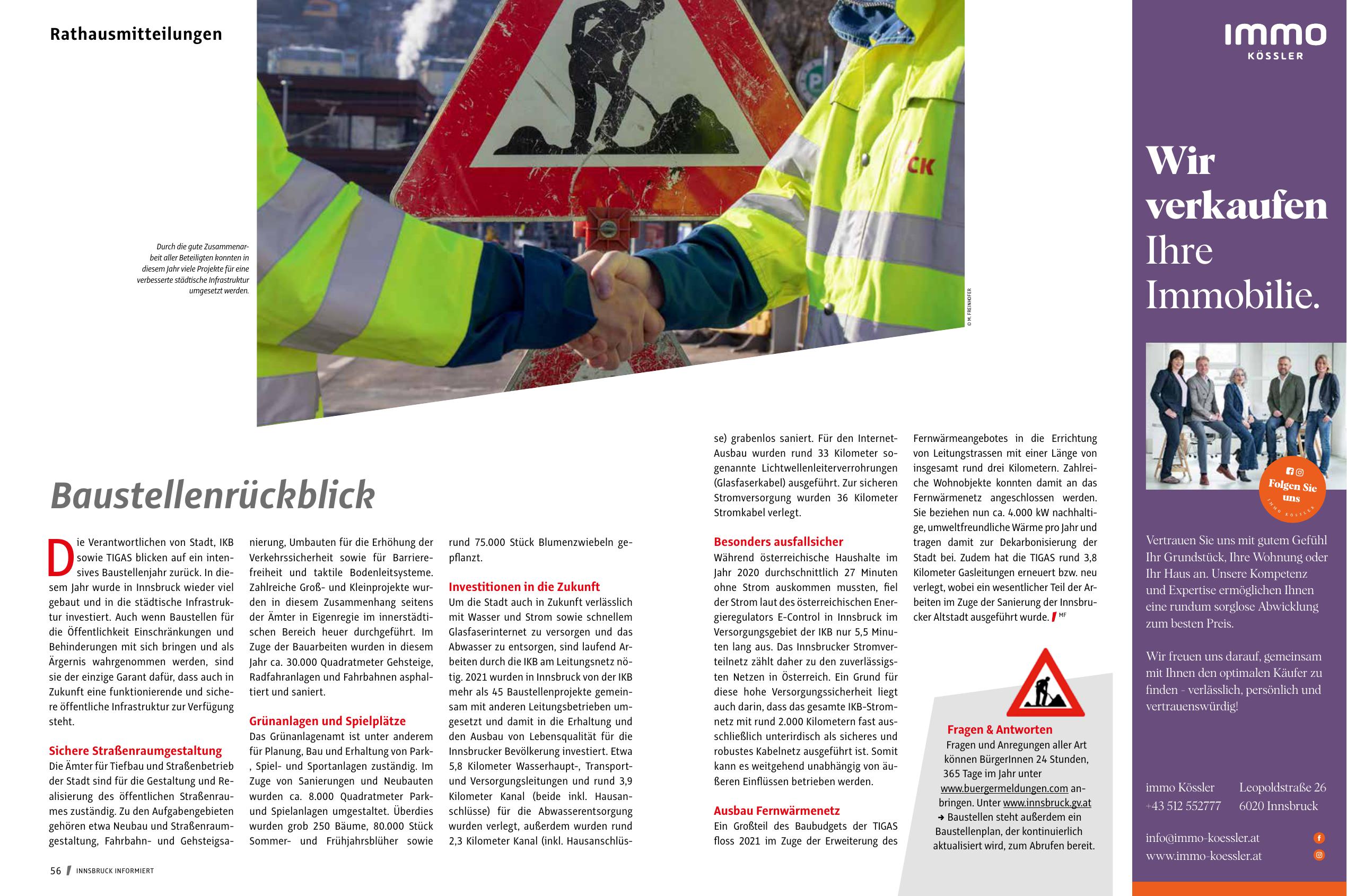 sowie TIGAS blicken auf ein intensives Baustellenjahr zurück. In diesem Jahr wurde in Innsbruck wieder viel