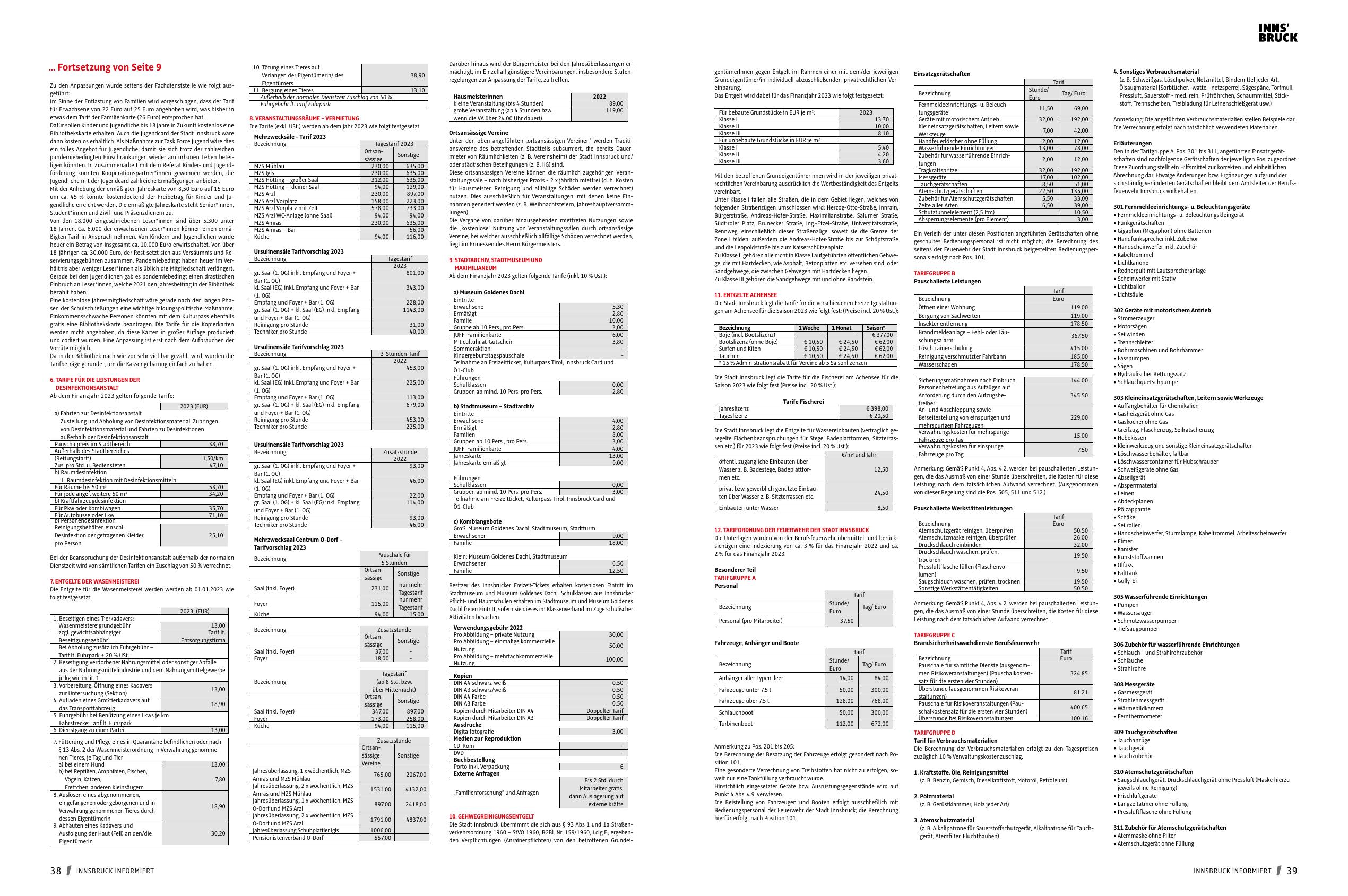 6. TARIFE FÜR DIE LEISTUNGEN DER