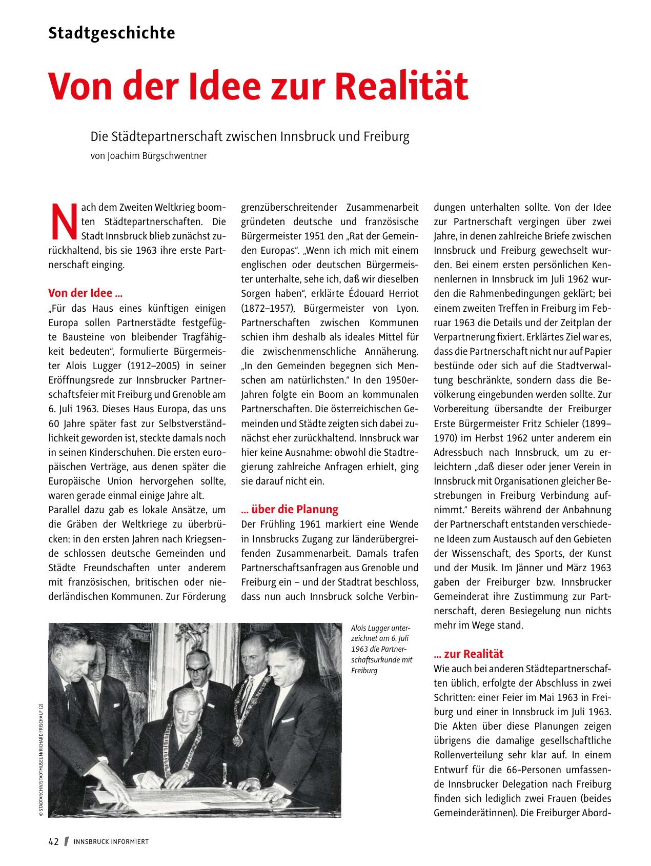 Die Städtepartnerschaft zwischen Innsbruck und Freiburg