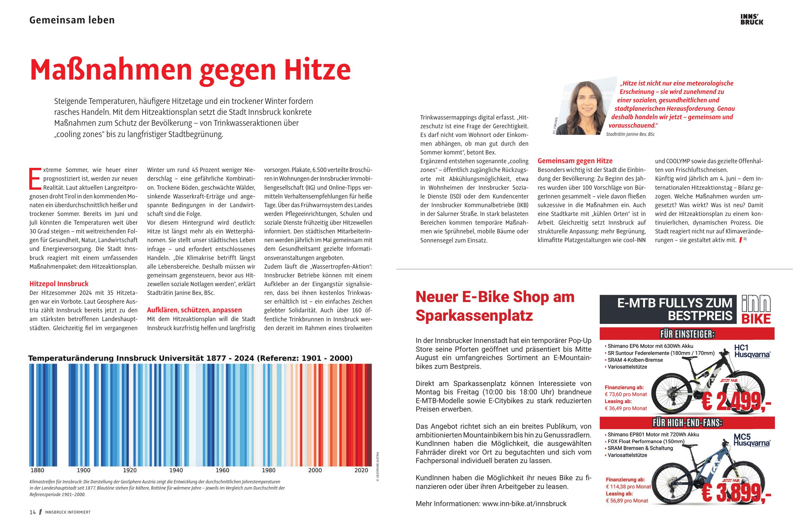 vorsorgen. Plakate, 6.500 verteilte Broschüren in Wohnungen der Innsbrucker Immobiliengesellschaft (IIG) und Online-Tipps vermitteln Verhaltensempfehlungen für heiße