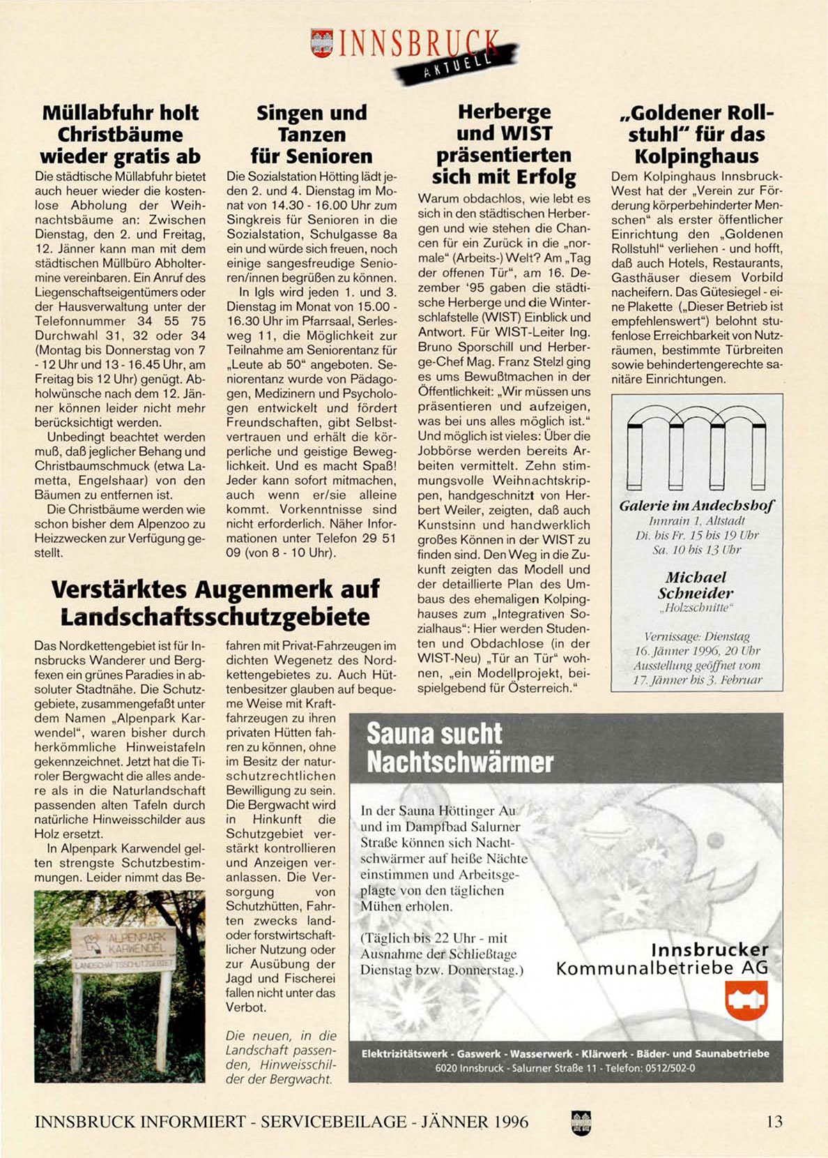 INNSBRUCK INFORMIERT - SERVICEBEILAGE - JÄNNER 1996
