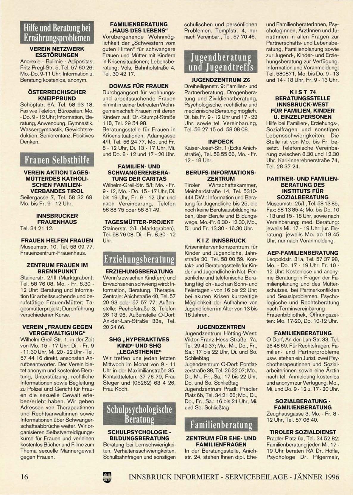 INNSBRUCK INFORMIERT - SERVICEBEILAGE - JÄNNER 1996