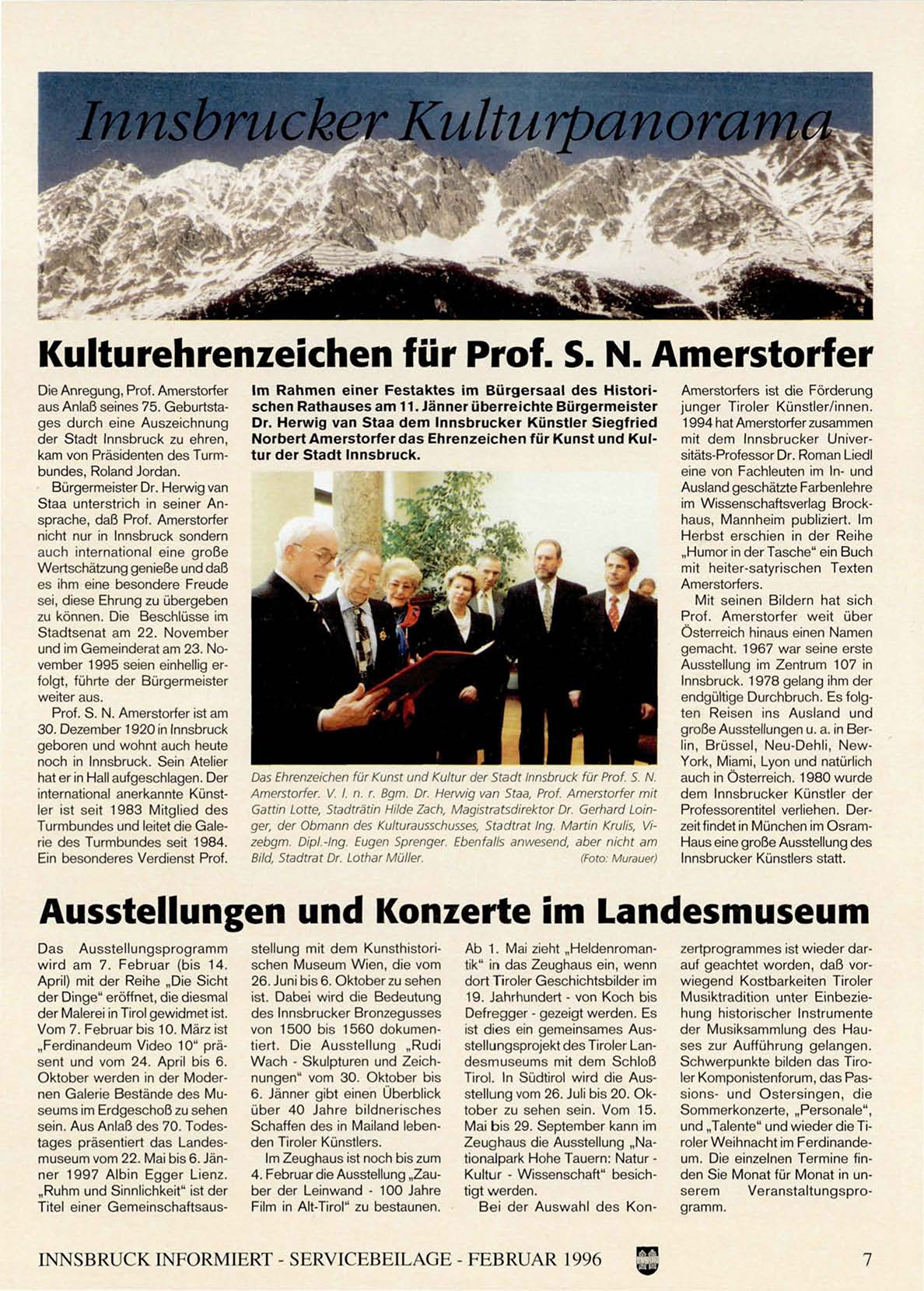 Das Ehrenzeichen für Kunst und Kultur der Stadt Innsbruck für Prof. 5. N.auch in Österreich. 1980 wurde