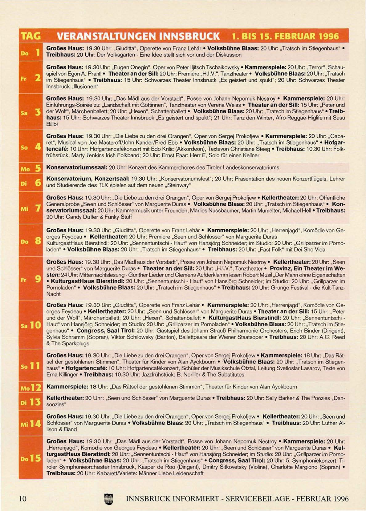 INNSBRUCK INFORMIERT - SERVICEBEILAGE - FEBRUAR 1996