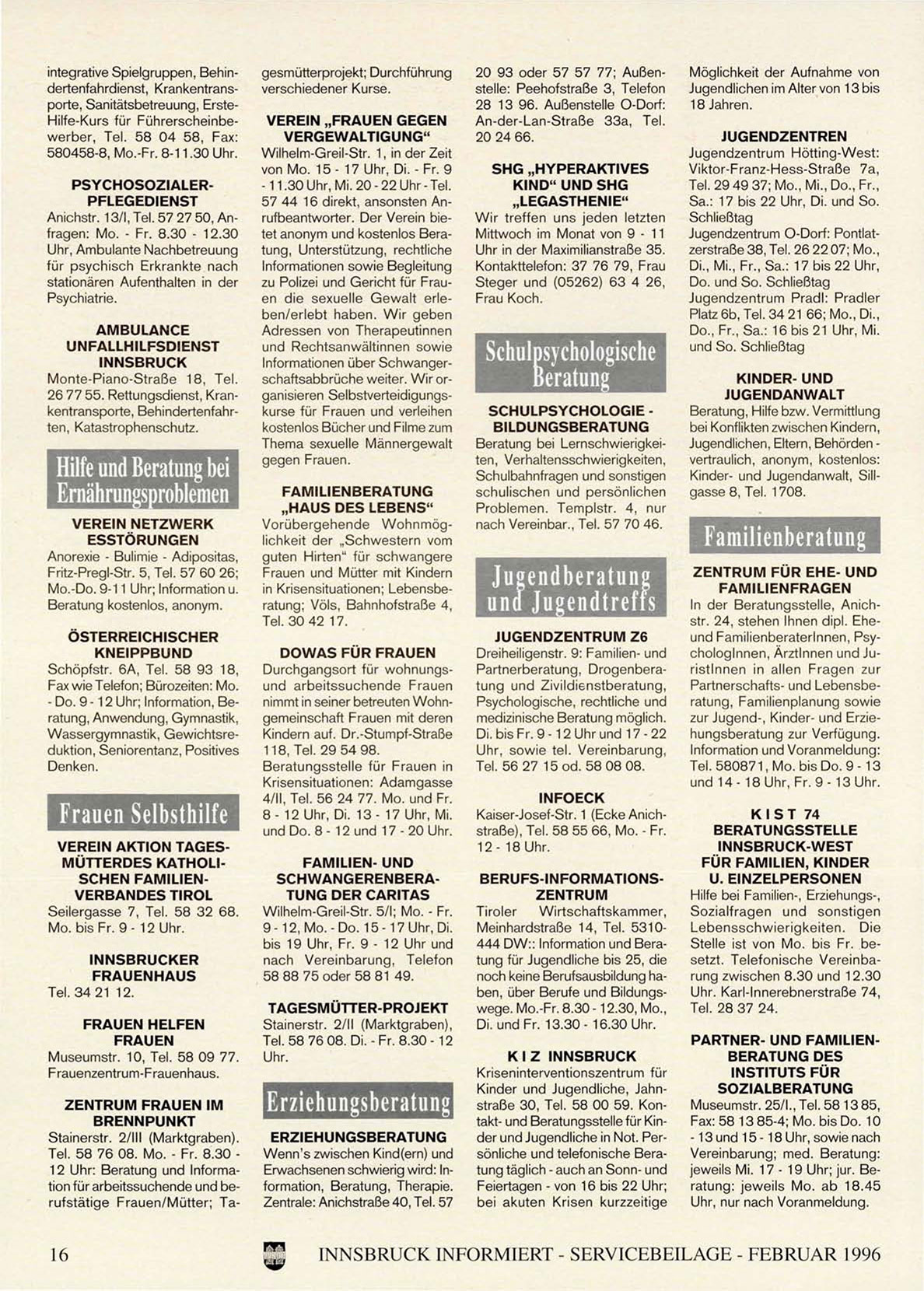 INNSBRUCK INFORMIERT - SERVICEBEILAGE - FEBRUAR 1996