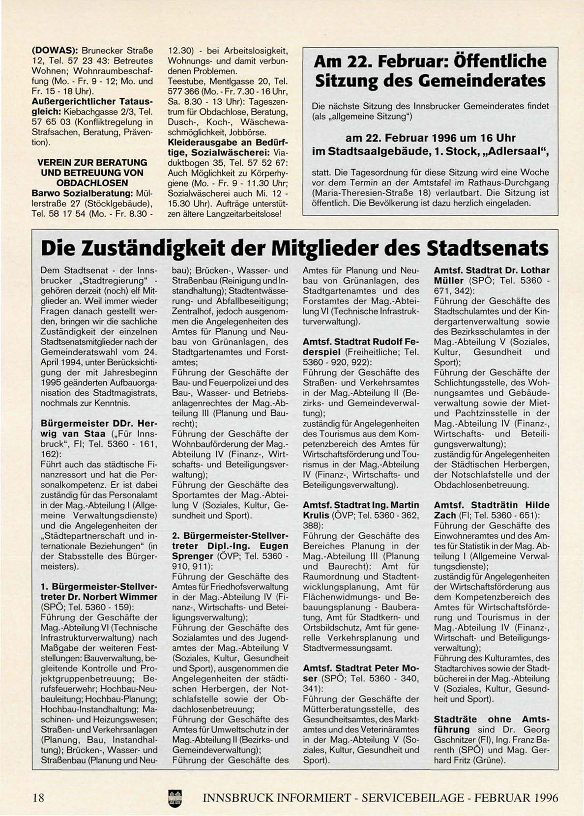 INNSBRUCK INFORMIERT - SERVICEBEILAGE - FEBRUAR 1996