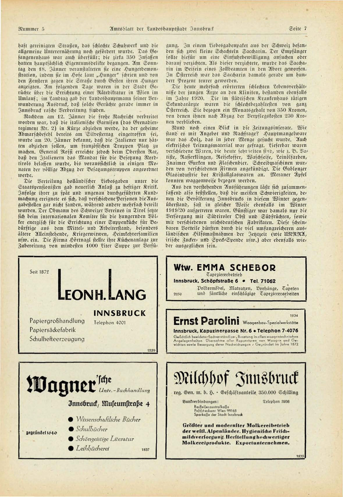 Aus den vorstehenden Ausführungen läßt sich zusammenfassend alfo feststellen, ^dasi die meisten Schwierigkeiten, denen die Bevölkerung Innsbrucks iu diesem Winter gegenüberstand, fast in gleicher Weife ebenfalls im Winter