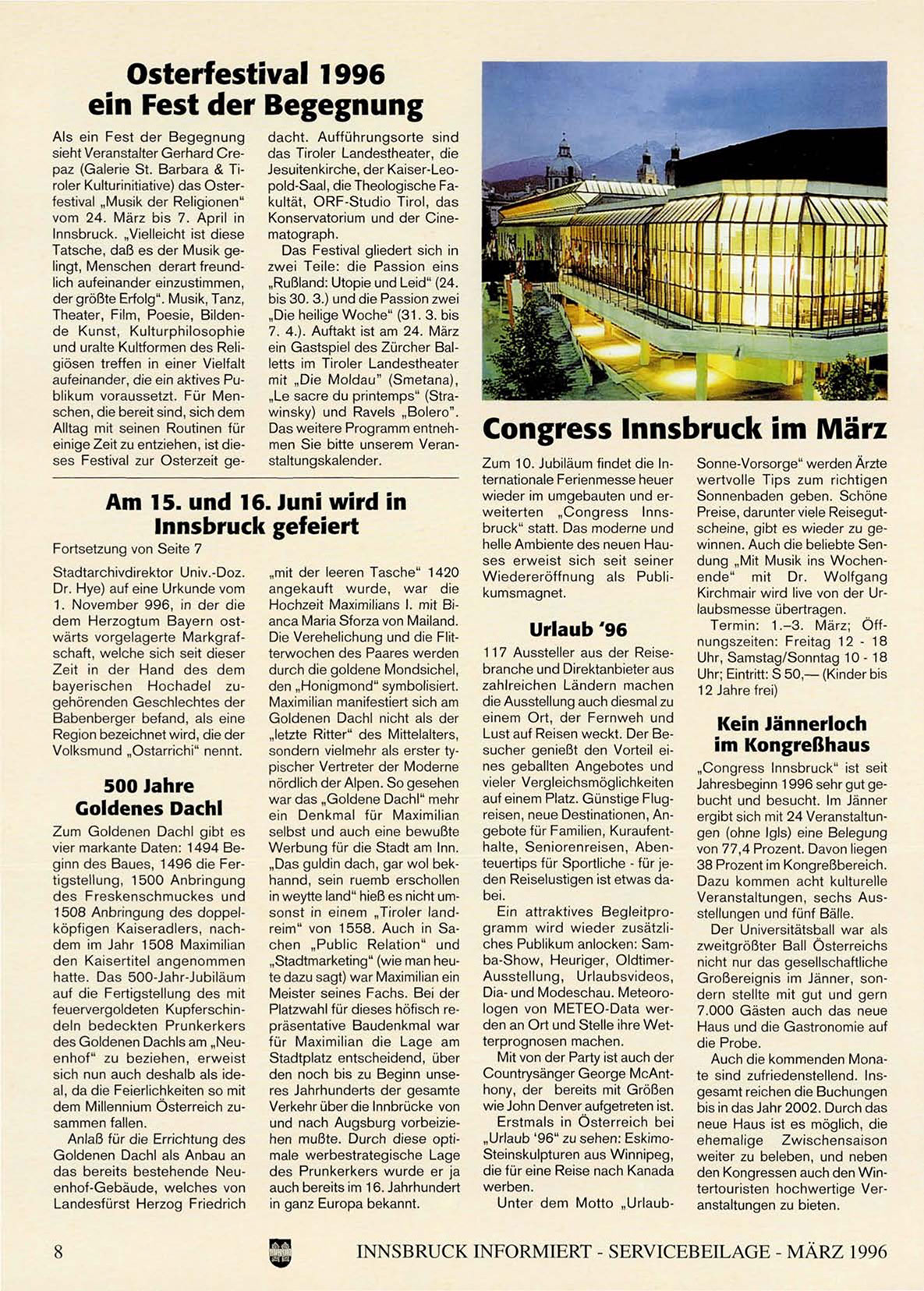 INNSBRUCK INFORMIERT - SERVICEBEILAGE - MÄRZ 1996