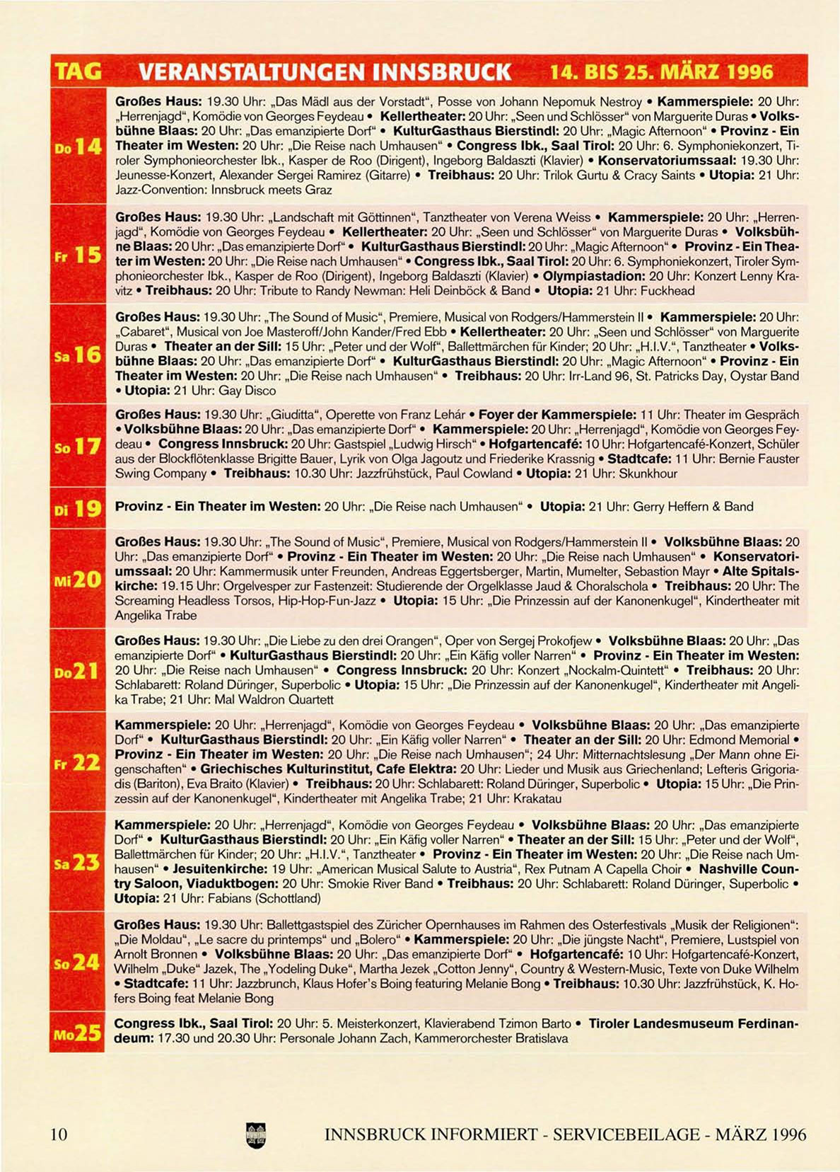 INNSBRUCK INFORMIERT - SERVICEBEILAGE - MÄRZ 1996