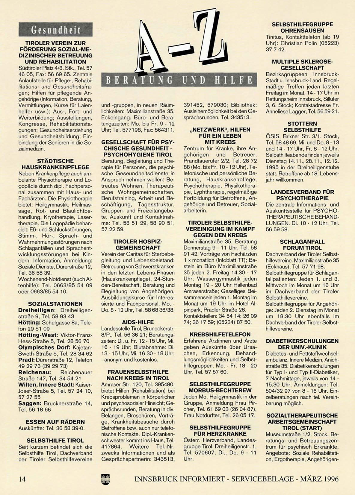 INNSBRUCK INFORMIERT - SERVICEBEILAGE - MÄRZ 1996