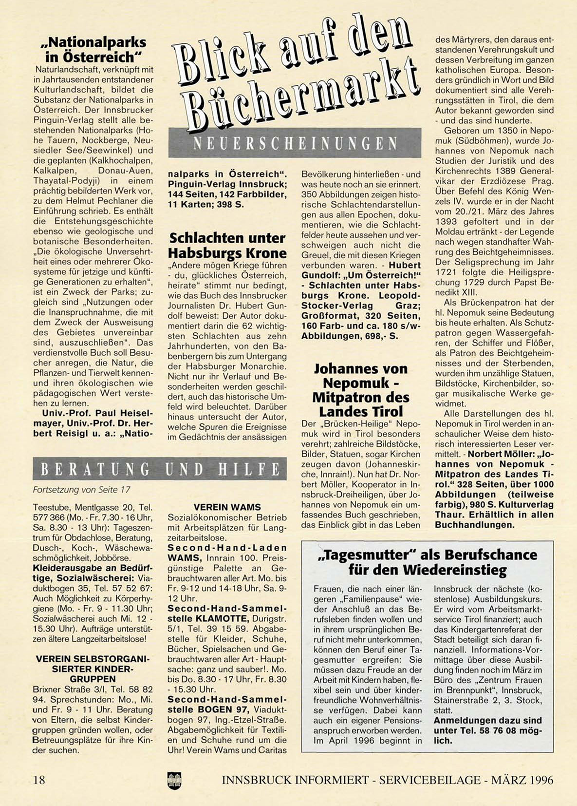 INNSBRUCK INFORMIERT - SERVICEBEILAGE - MÄRZ 1996