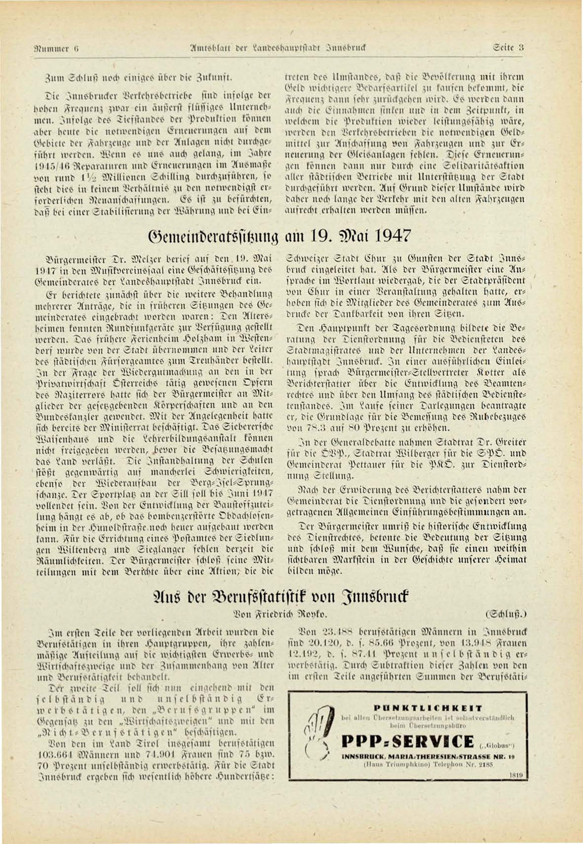 Stadtmagistrates und der Unternehmen der Landeshauptstadt Innsbruck. I n eiucr ausführlichen Einleitung fpracb Bürgermeister-Stellvertreter Hotter als