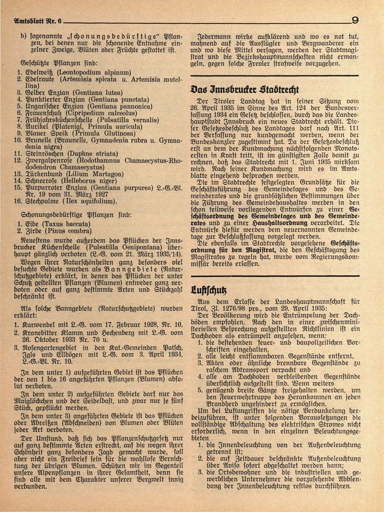 Neuestens wurde außerdem das Pflücken der Innsbrucker Küchenschelle (?ui8ati11a Oßnivontana) überhaupt gänzlich verboten (L.-G. vom 21. März 1935/14).