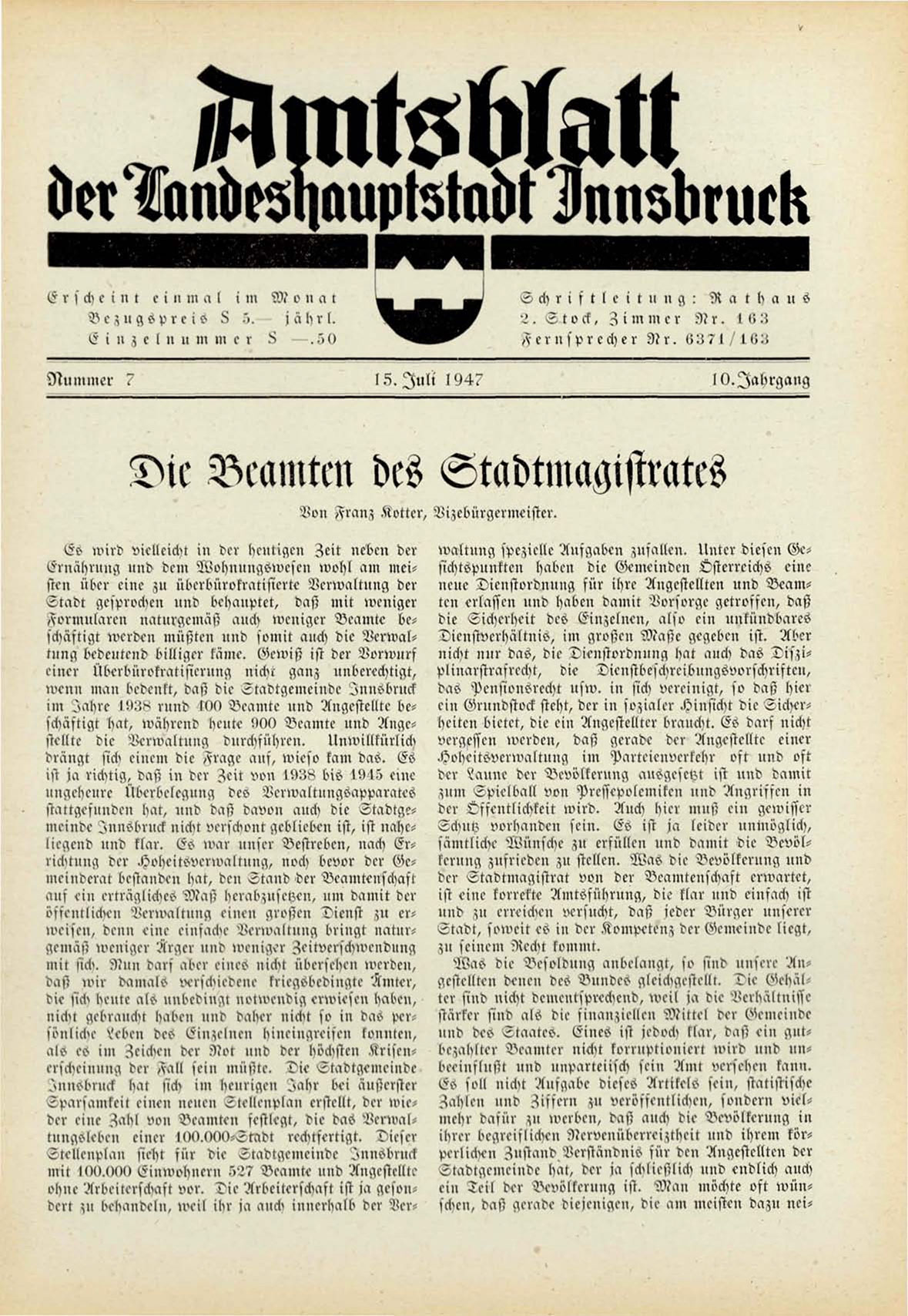 stattgefunden hat, und daß davon auch die Stadtgemeinde Innsbruck nicht verschont geblieben ist, ist naheliegend nnd klar. Es war unser Bestreben, nach Erricktnng der Hoheitsverwaltung, noch bevor der Gcmeinderat bestanden hat, den Stand der Beamtenschaft