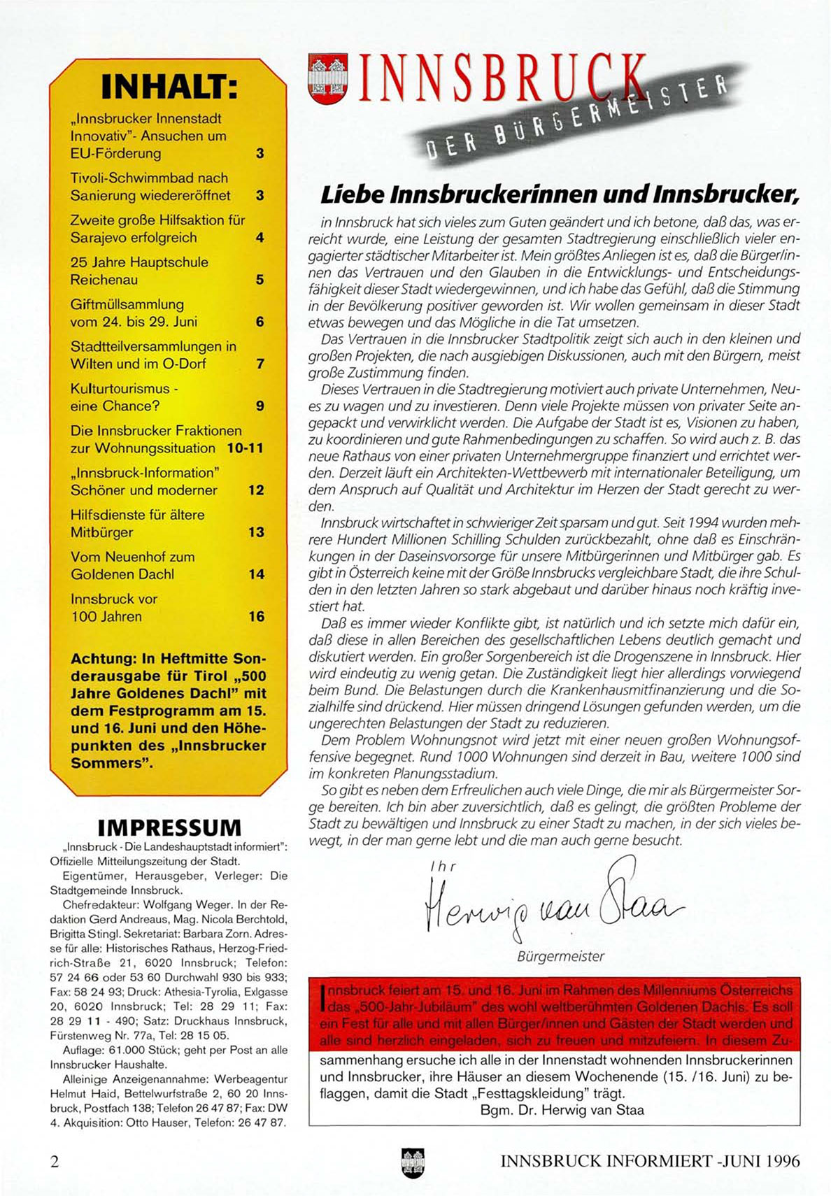 INNSBRUCK INFORMIERT -JUNI 1996