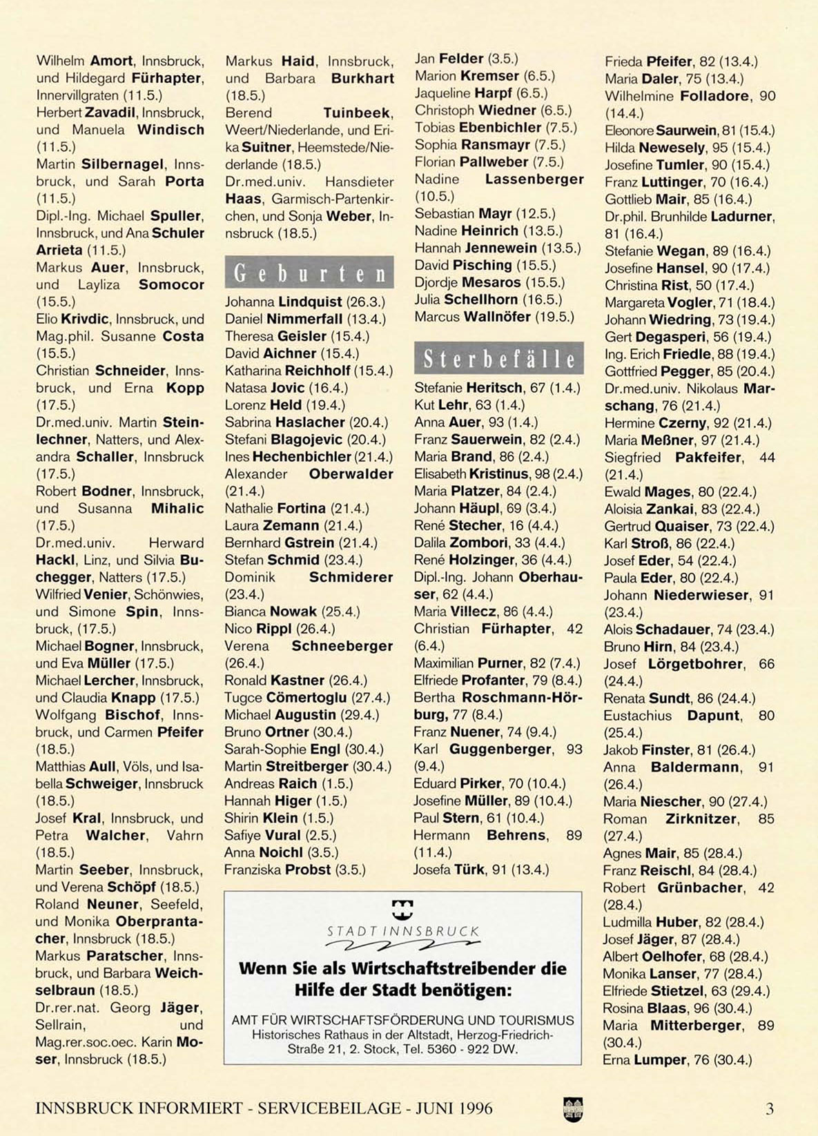 INNSBRUCK INFORMIERT - SERVICEBEILAGE - JUNI 1996