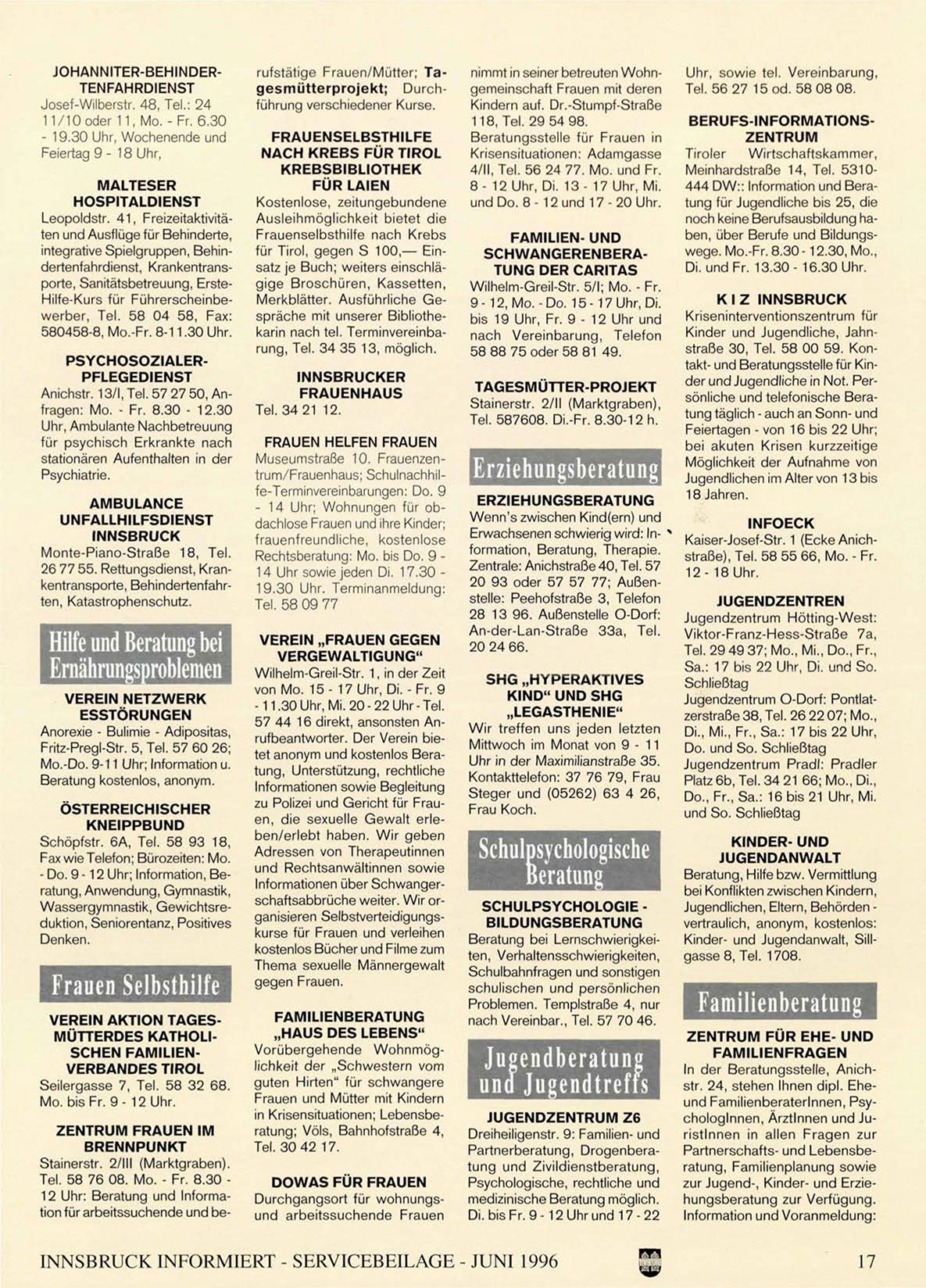 INNSBRUCK INFORMIERT - SERVICEBEILAGE - JUNI 1996