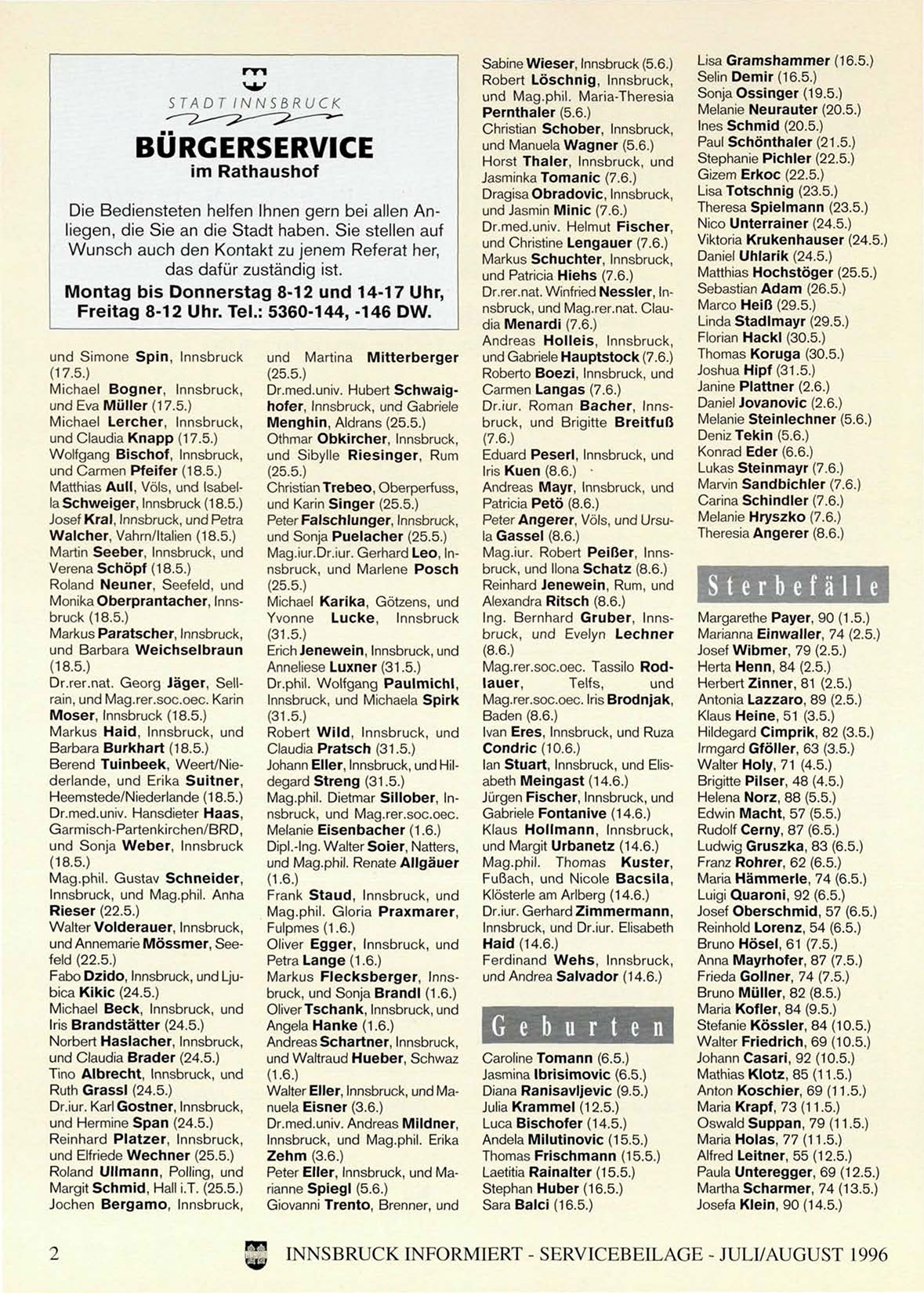 INNSBRUCK INFORMIERT - SERVICEBEILAGE - JULI/AUGUST 1996