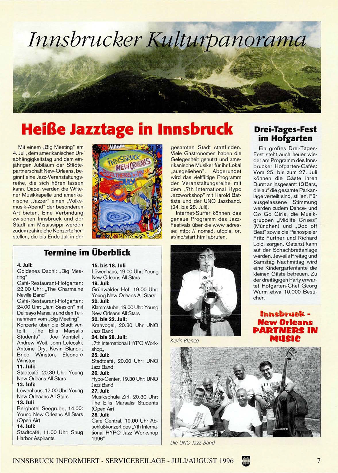 INNSBRUCK INFORMIERT - SERVICEBEILAGE - JULI/AUGUST 1996