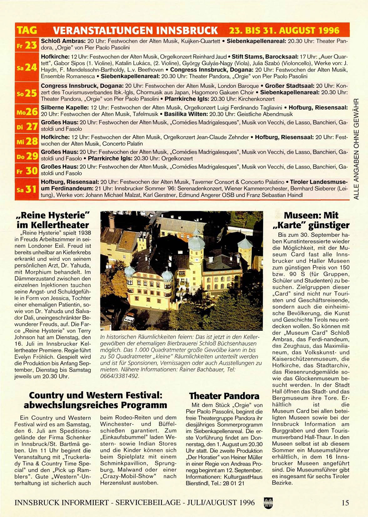 INNSBRUCK INFORMIERT - SERVICEBEILAGE - JULI/AUGUST 1996