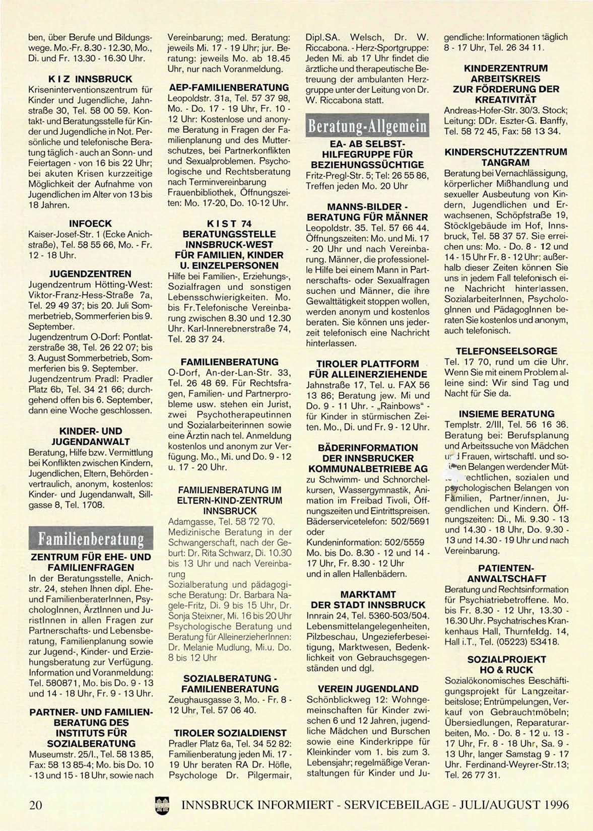 INNSBRUCK INFORMIERT - SERVICEBEILAGE - JULI/AUGUST 1996