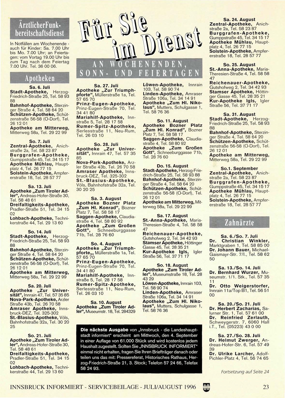 INNSBRUCK INFORMIERT - SERVICEBEILAGE - JULI/AUGUST 1996