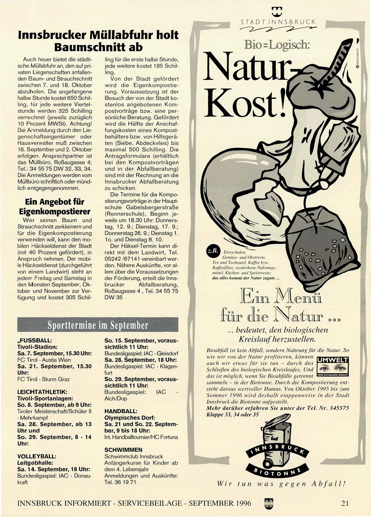 INNSBRUCK INFORMIERT - SERVICEBEILAGE - SEPTEMBER 1996