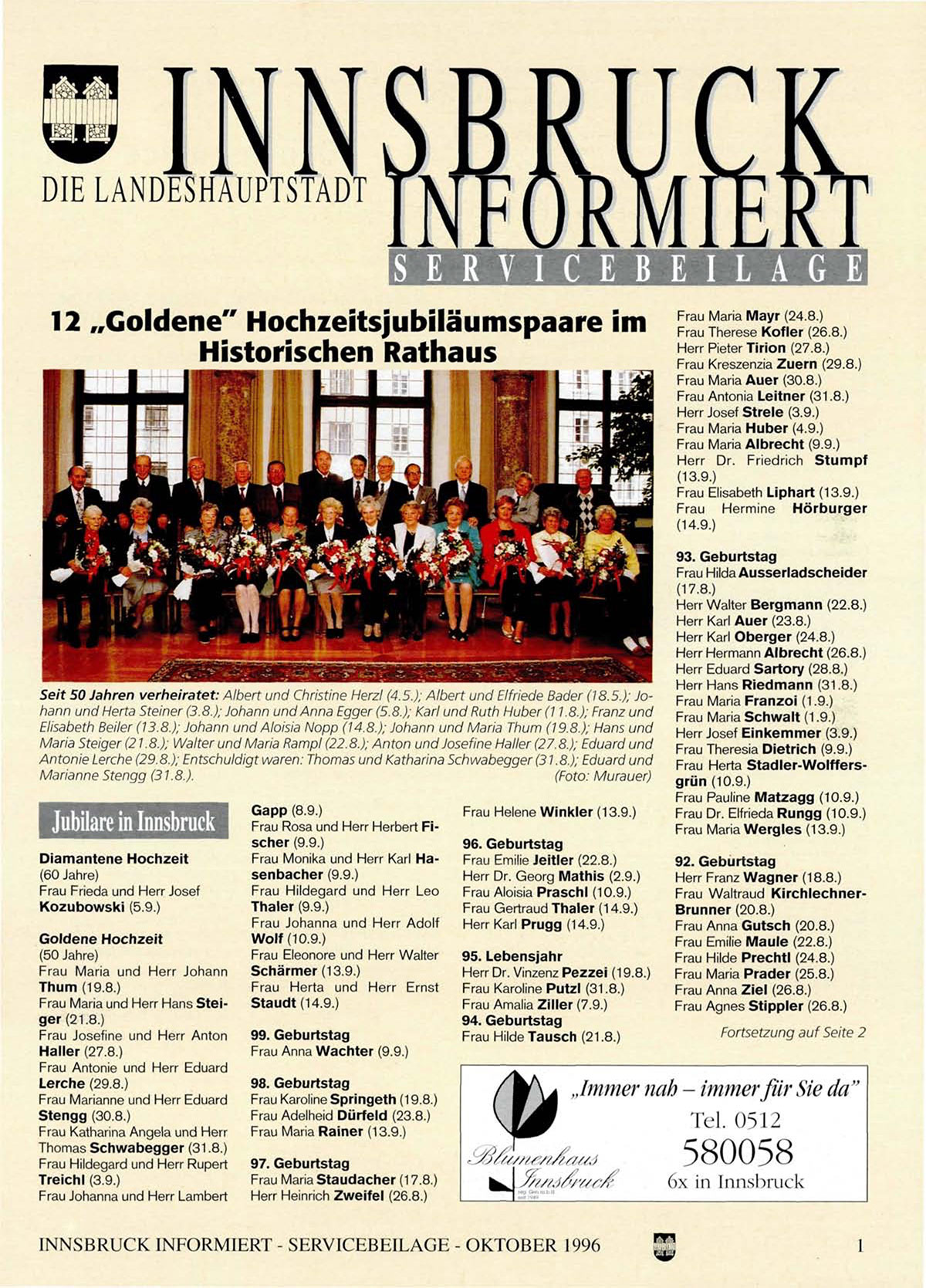 INNSBRUCK INFORMIERT - SERVICEBEILAGE - OKTOBER 1996