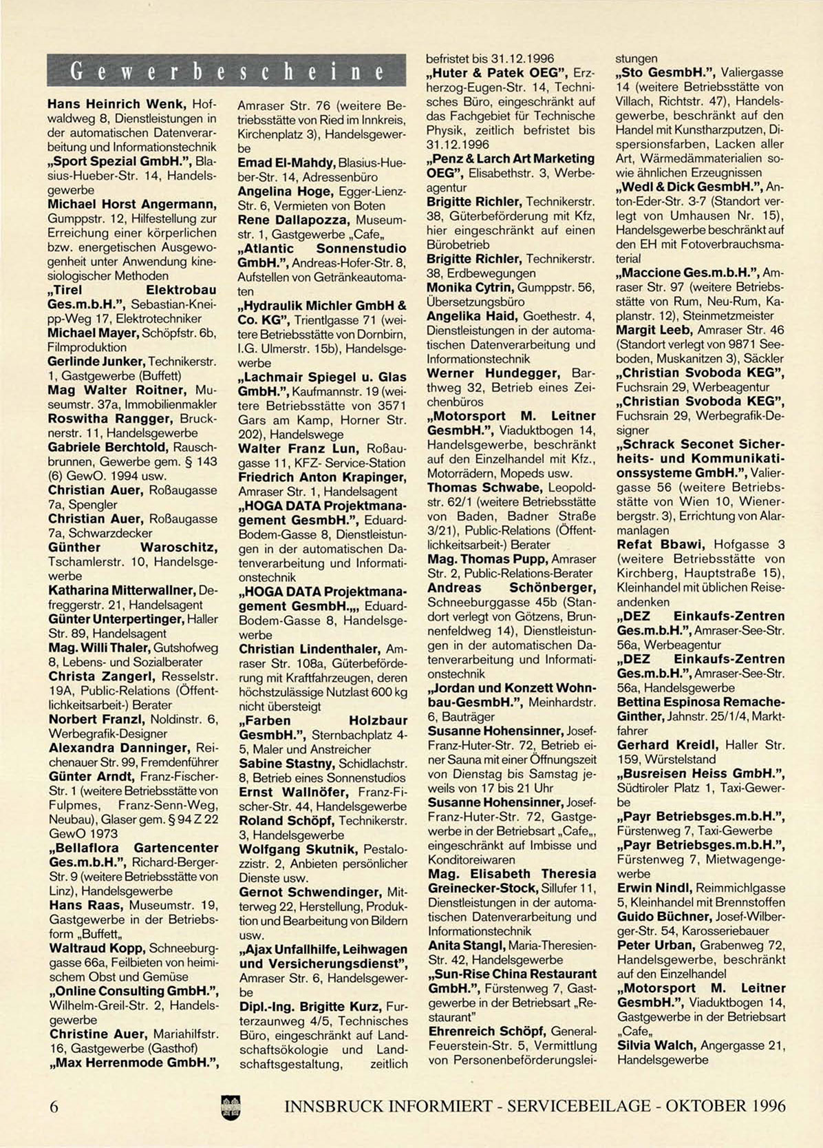 INNSBRUCK INFORMIERT - SERVICEBEILAGE - OKTOBER 1996