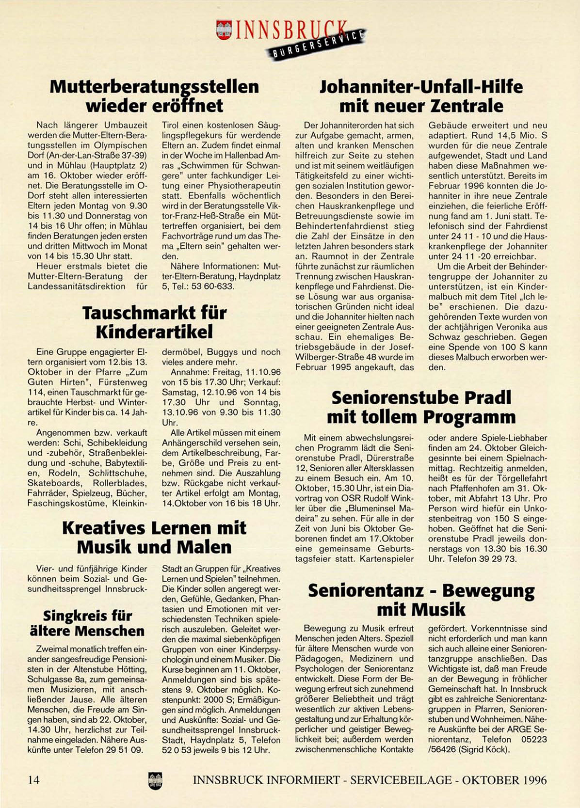 INNSBRUCK INFORMIERT - SERVICEBEILAGE - OKTOBER 1996