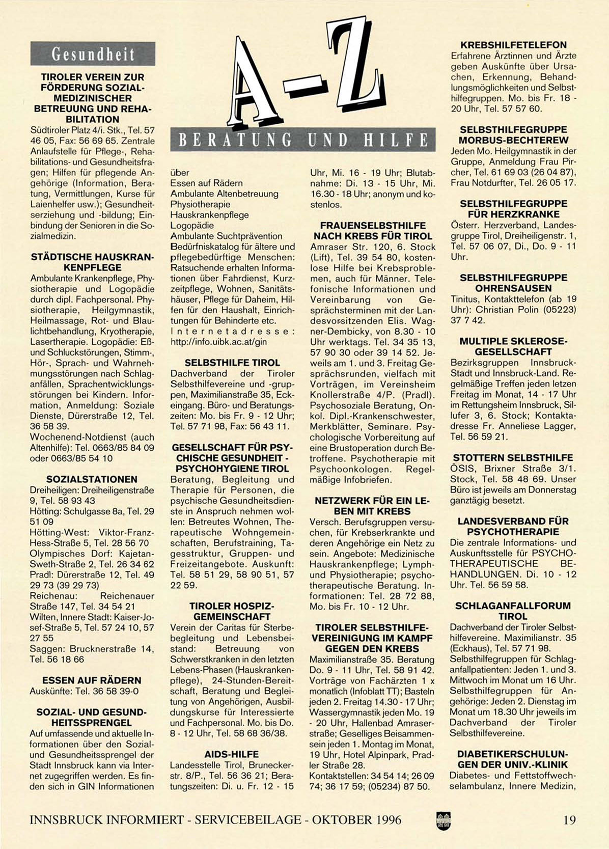 INNSBRUCK INFORMIERT - SERVICEBEILAGE - OKTOBER 1996