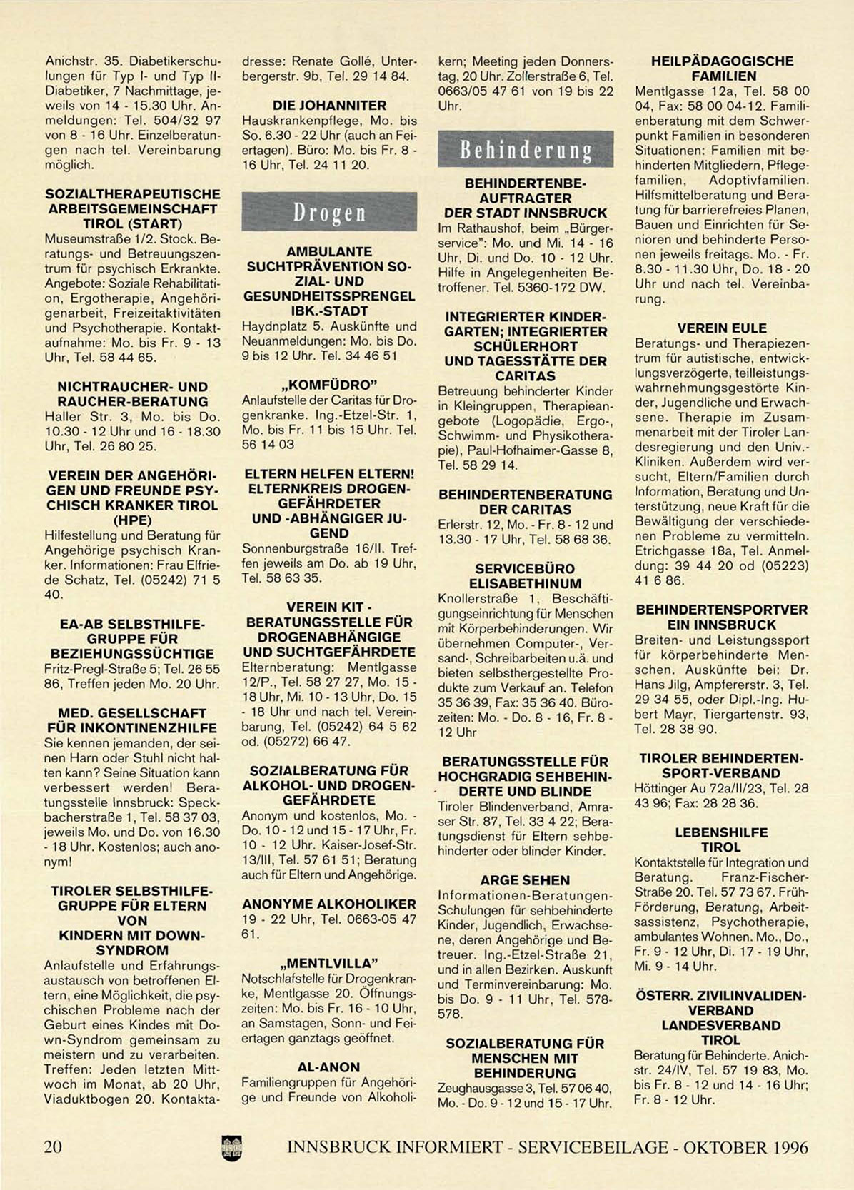 INNSBRUCK INFORMIERT - SERVICEBEILAGE - OKTOBER 1996