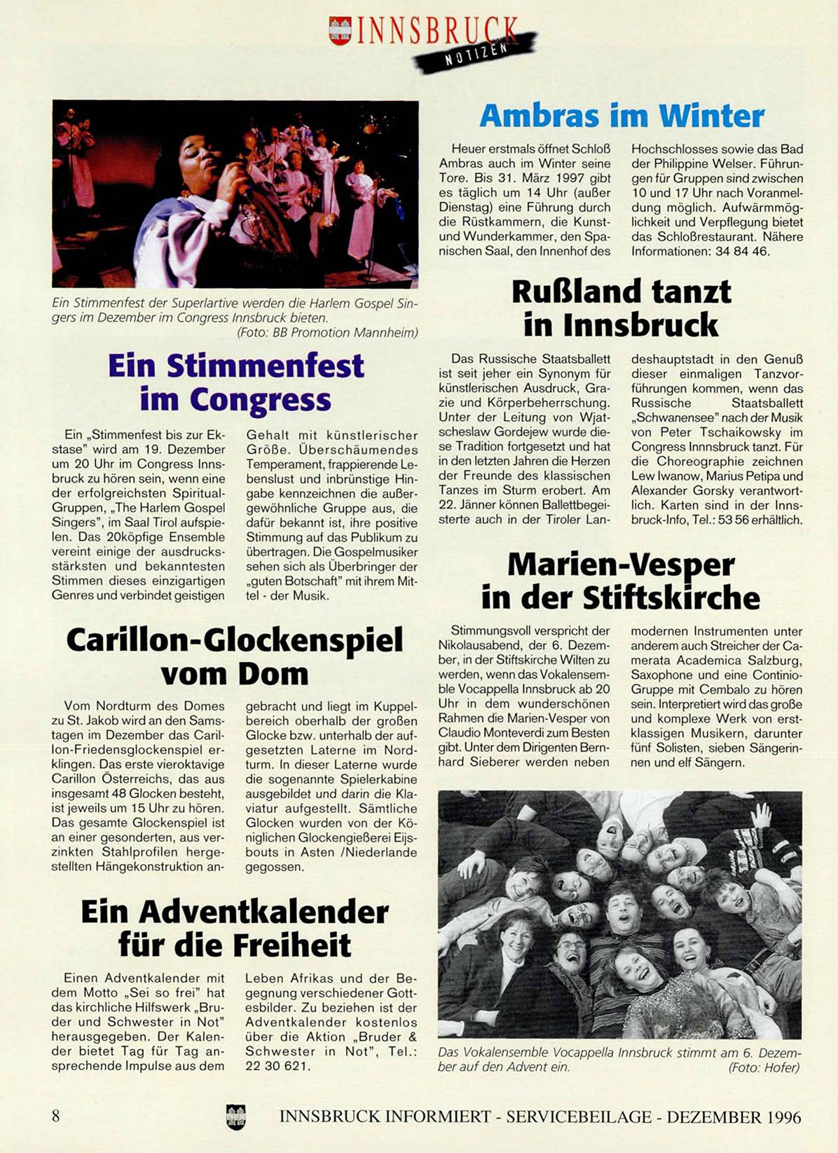 INNSBRUCK INFORMIERT - SERVICEBEILAGE - DEZEMBER 1996