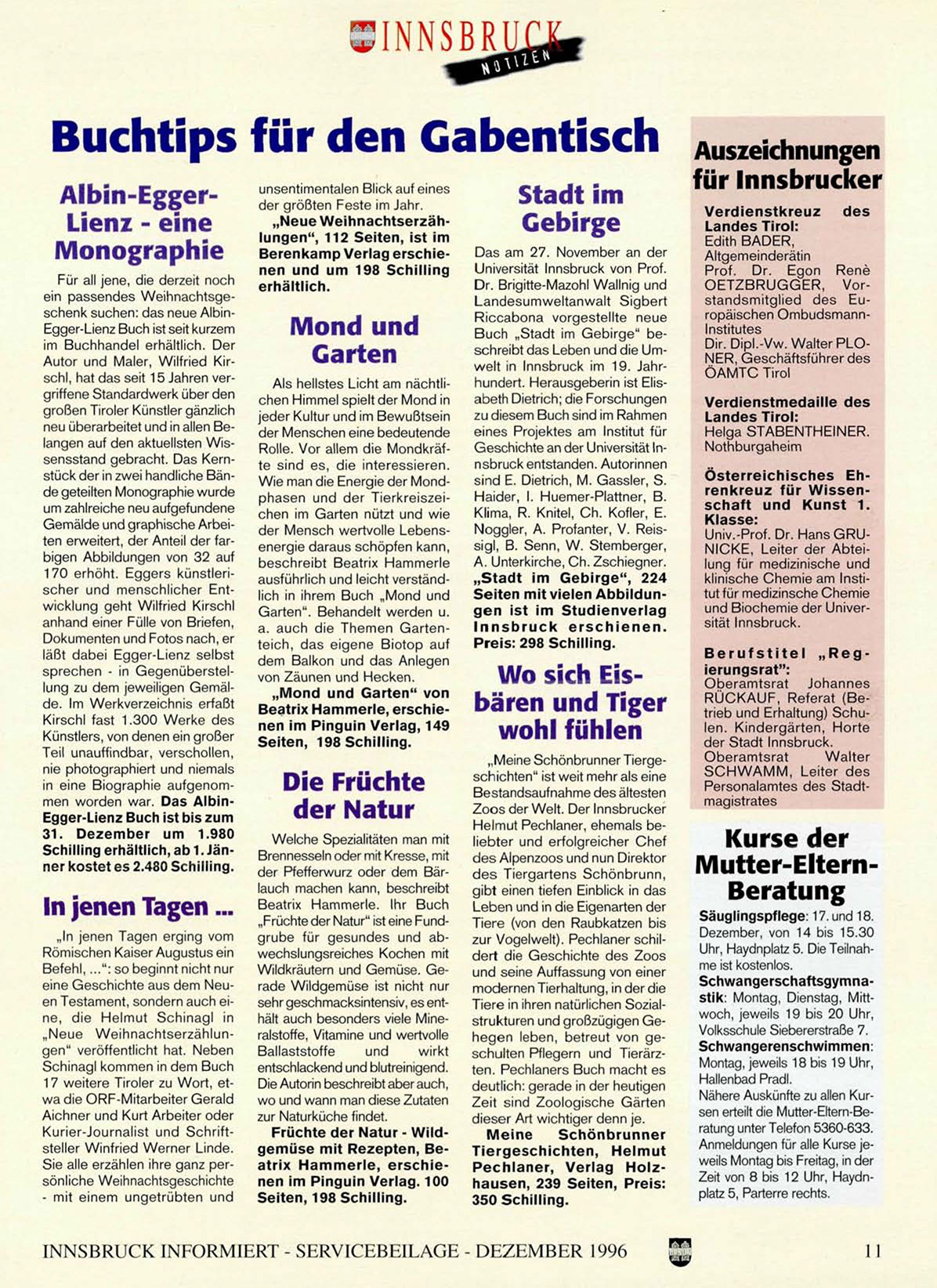 INNSBRUCK INFORMIERT - SERVICEBEILAGE - DEZEMBER 1996